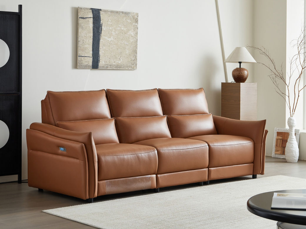 非凡工艺 现代简约 网红 中古风 接触面头层牛皮+框架落叶松木+多层实木夹板+金属脚 2.8米 大四人位 分体 沙发甄品家具 现代简约 接触面进口头层牛皮+进口 落叶松+高 回弹海绵+高承重碳 钢功能架+零靠墙锐迈电机+单电动功能 碳素钢脚 3米 三人位 单电动功能沙发