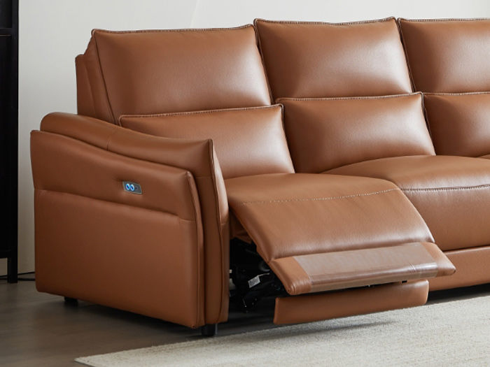 非凡工艺 现代简约 接触面进口头层牛皮+进口 落叶松+高 回弹海绵+高承重碳 钢功能架+零靠墙锐迈电机+单电动功能 碳素钢脚 3.1米 四人位 单电动功能沙发