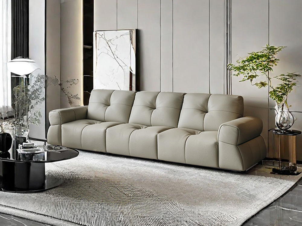 非凡工艺 现代简约 接触面头层黄牛皮+仿真皮+E1级多层实木板+进口落叶松 五人位 3.2米沙发