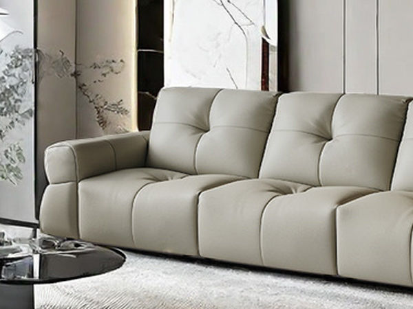 非凡工艺 现代简约 接触面头层黄牛皮+仿皮 E1级夹板+松木框架 无粉海绵 靠包赛羽绒+公仔棉填充 样色 直排2.4米三人位 皮艺沙发¥6313