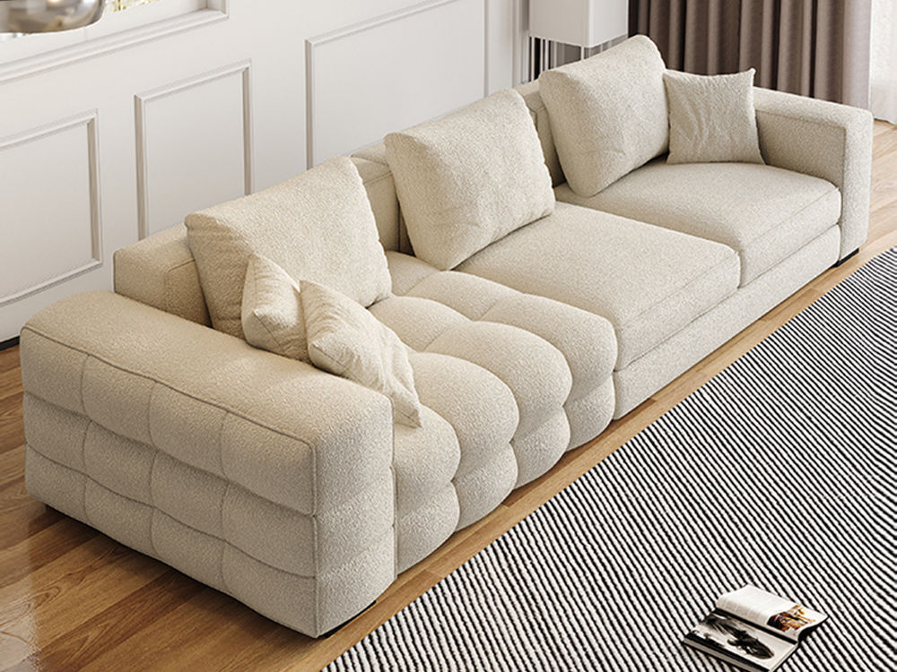 非凡工艺 现代简约 奶油风 羊羔绒+海绵+公仔绵+实木框架+实木脚 布艺1.8米沙发 双人位