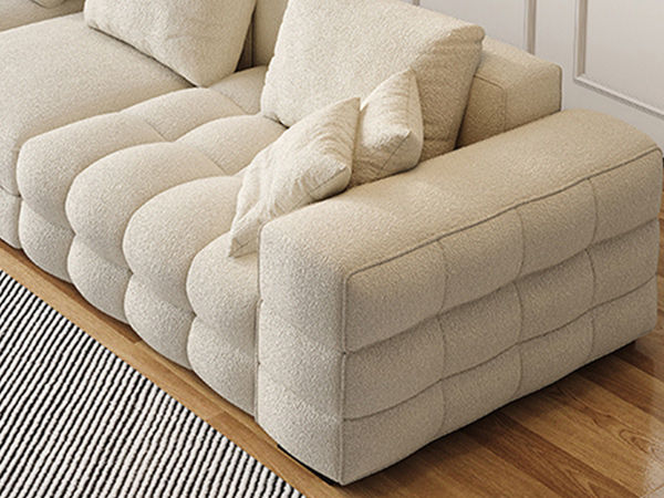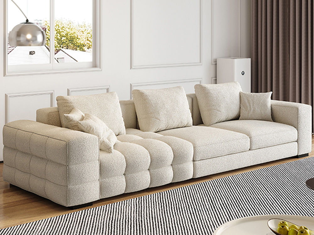 非凡工艺 现代简约 奶油风 科技绒+高密度海绵+羽绒+松木+桉木+弹簧+橡筋+网布+实木脚 3.2米 五人位分体 绒艺沙发¥13221
