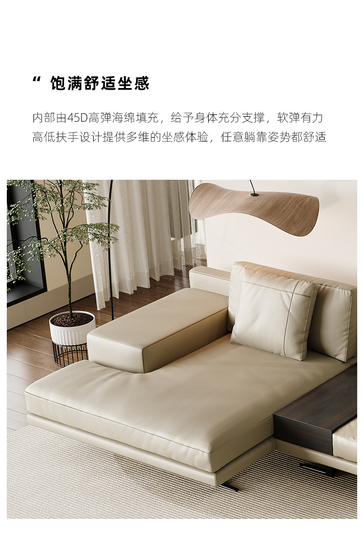 贝斯solo 设计师 网红 极简 接触面真皮 俄罗斯进口松木内架 高回弹海绵填充靠背 羽绒座包 左贵妃+无扶单+无扶单带茶几 豆腐块边境3.59米沙发¥22463