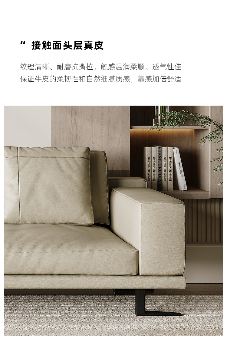 帝幔佧 极简 接触面真皮 俄罗斯进口松木内架 高回弹海绵填充靠背 四人位 极简皮2.89米沙发