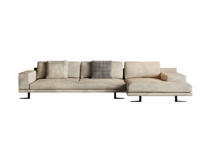 梵纳意简 极简 接触面头层牛皮+多层实木板+实木框架+高回弹海绵+不锈钢五金+羽绒 右转角沙发 Q361网红 极简钢琴键4.1米沙发¥29659