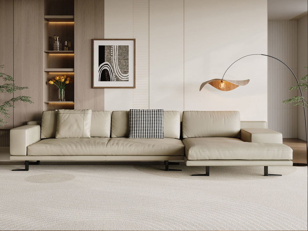 希奥 极简 接触面头层中厚压纹皮+圆胶脚皮艺转角沙发(4人位+左贵妃)网红云朵2.8米沙发¥31895