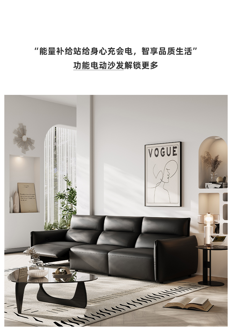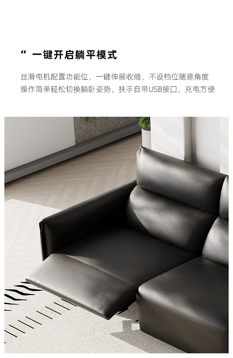 洛萨 现代 接触面真皮+全实木框架+高密度海绵 四人位 电动功能2.51米沙发