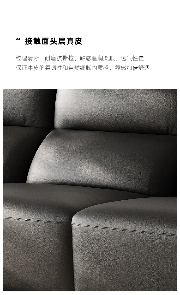 洛萨 现代 接触面真皮 俄罗斯进口松木内架 高回弹足45密度海绵填充靠背 右功能单+中单+左扶单 电动功能2.98米沙发