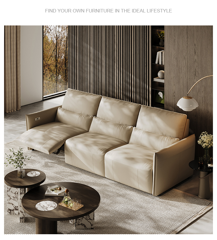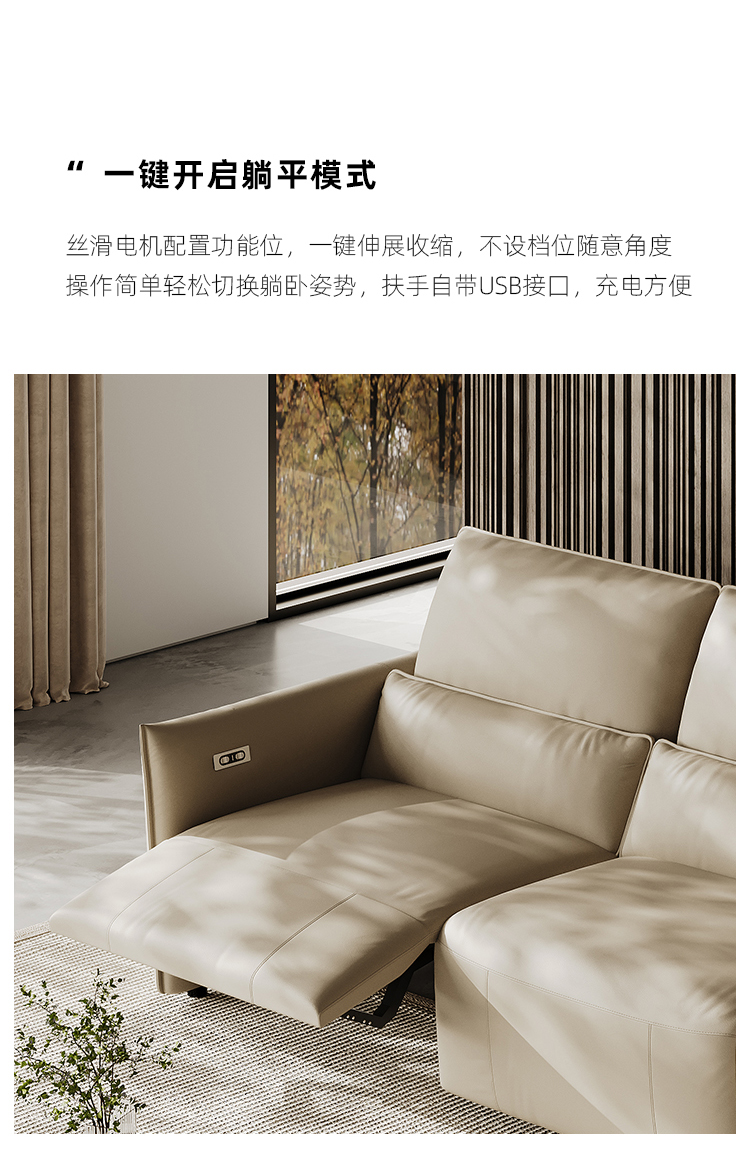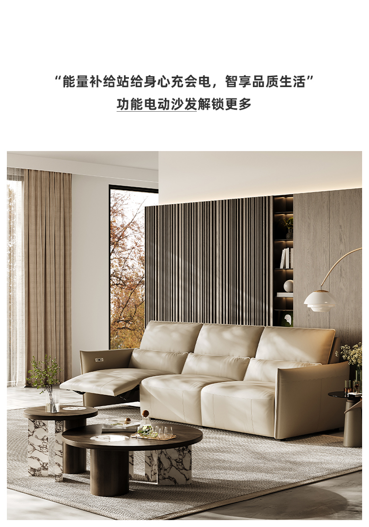 洛萨 现代 接触面真皮+全实木框架+高密度海绵 四人位 电动功能2.51米沙发
