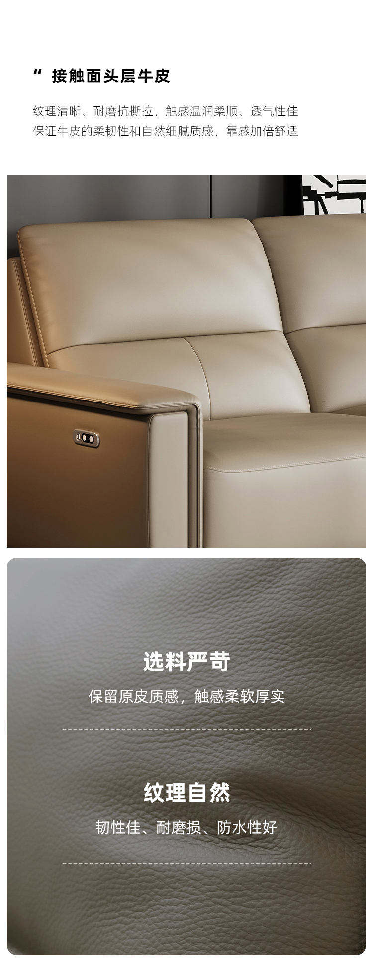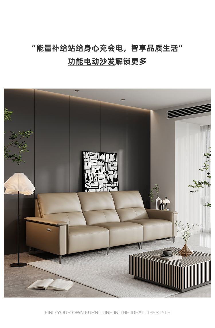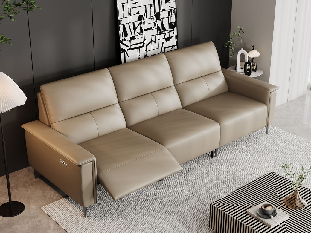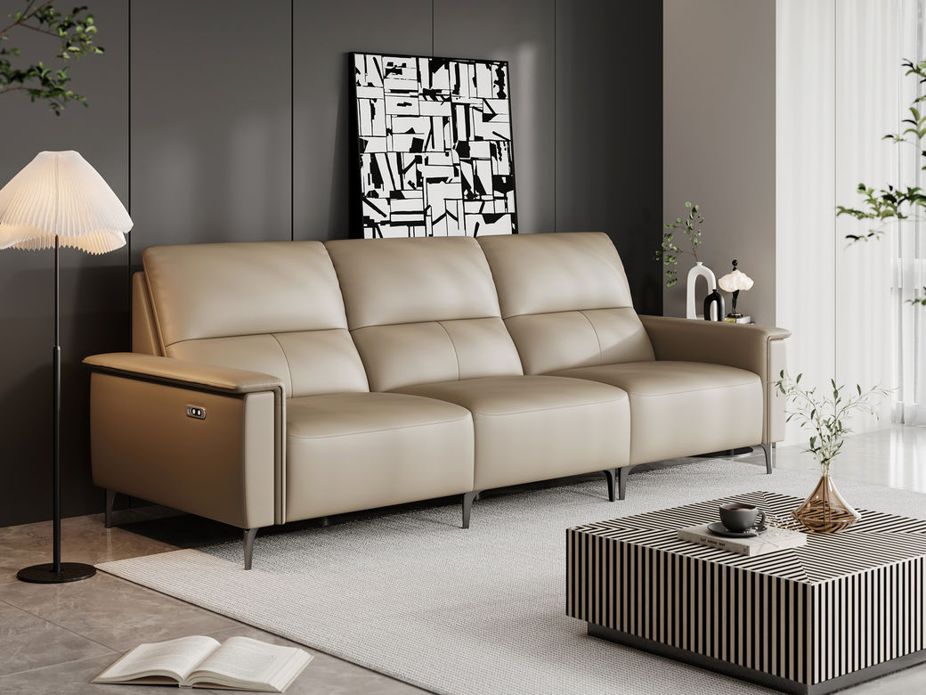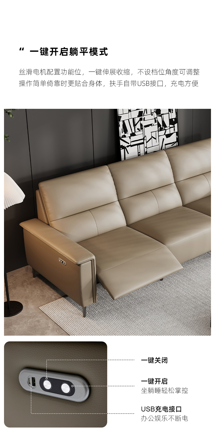 洛萨 现代 接触面真皮+全实木框架+高密度海绵 四人位 电动功能2.51米沙发¥16920