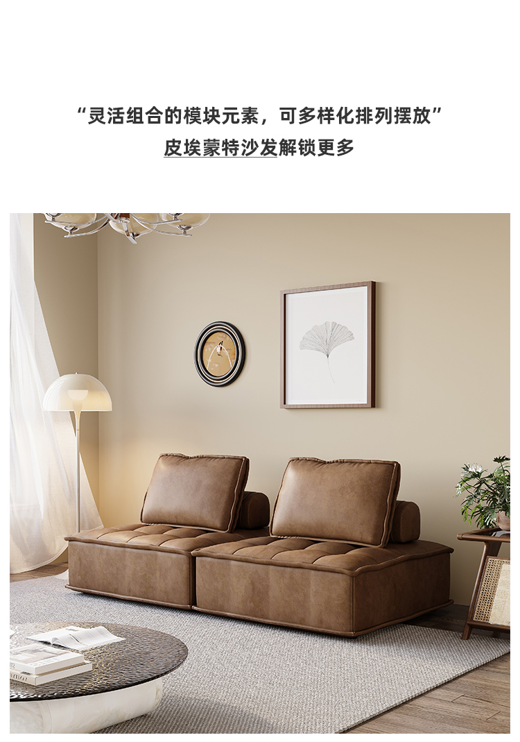 贝斯solo 设计师 网红 极简 布艺+仿皮 俄罗斯进口落叶松 优质高回弹海绵靠包 四人位 ELAN依澜3.4米沙发¥6250