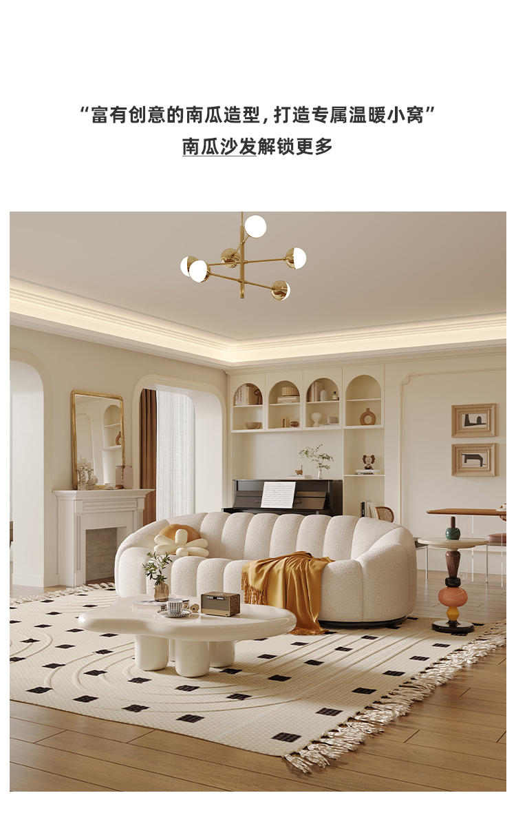 贝斯solo 设计师 网红 极简 布艺 俄罗斯进口松木内架 高回弹海绵填充靠背 双人位 南瓜2.1米沙发