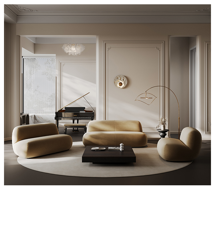 贝斯solo 设计师 网红 极简 布艺 俄罗斯进口松木内架 高回弹海绵填充靠背 三人位(不做分体) 月亮弧形2.2米沙发¥9954