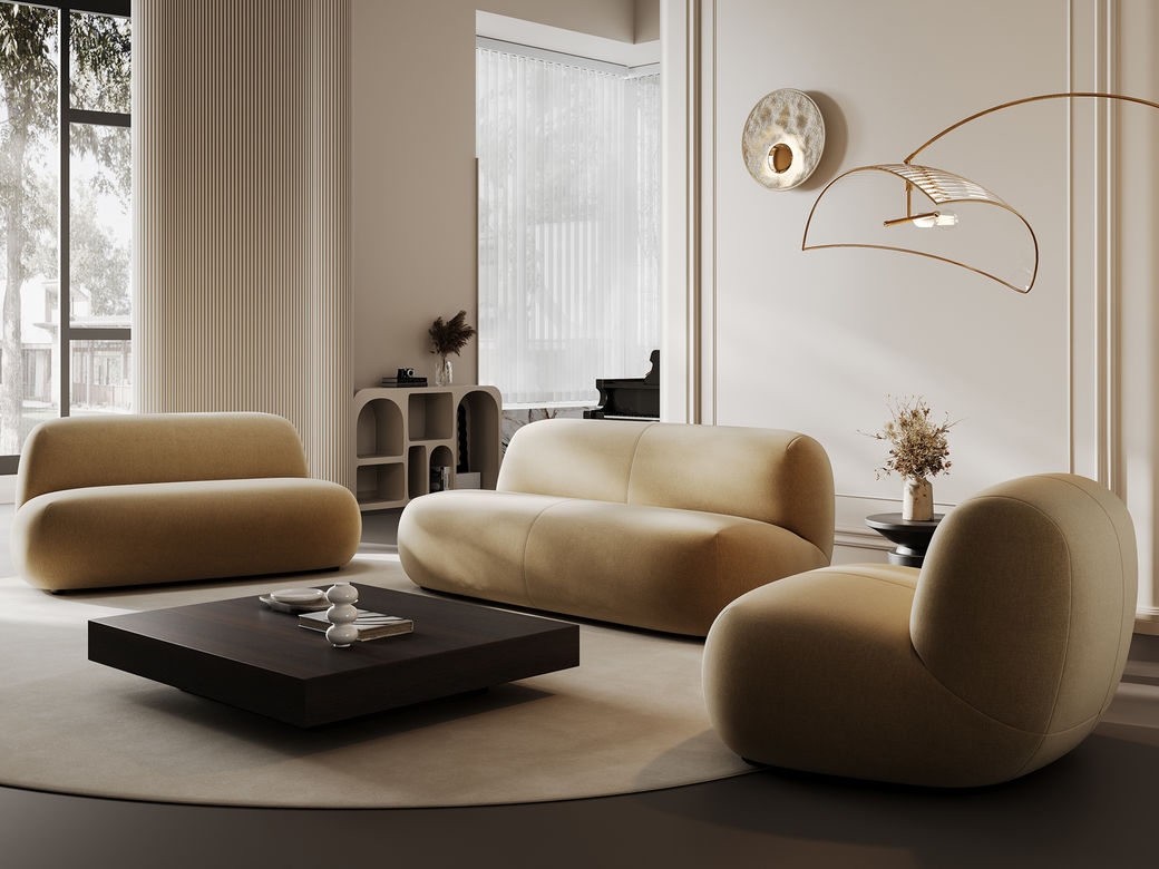 贝斯solo 设计师 网红 极简 布艺+定型棉 三人位 云朵2.32米沙发