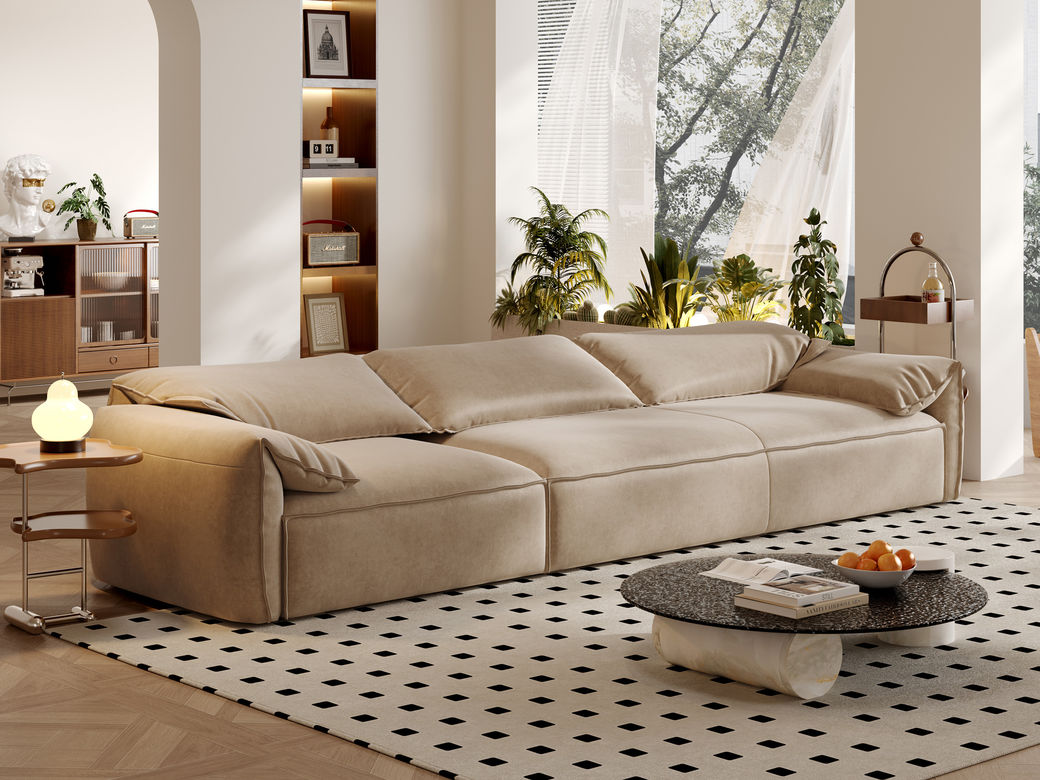 贝斯solo 设计师 网红 极简 布艺+优质高弹海绵+优质羽绒+实木框架+底架 三人位 SF0094云朵2.6米沙发¥10677