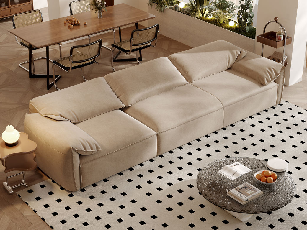 贝斯solo 设计师 网红 极简 磨砂皮 进口松木内架 高回弹足45密度海绵 A+B+C 冲浪3.93米沙发