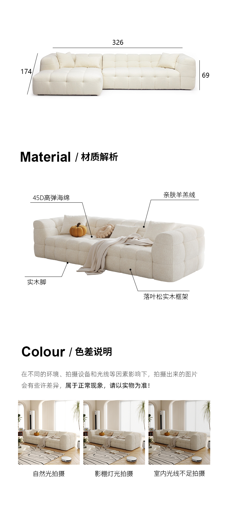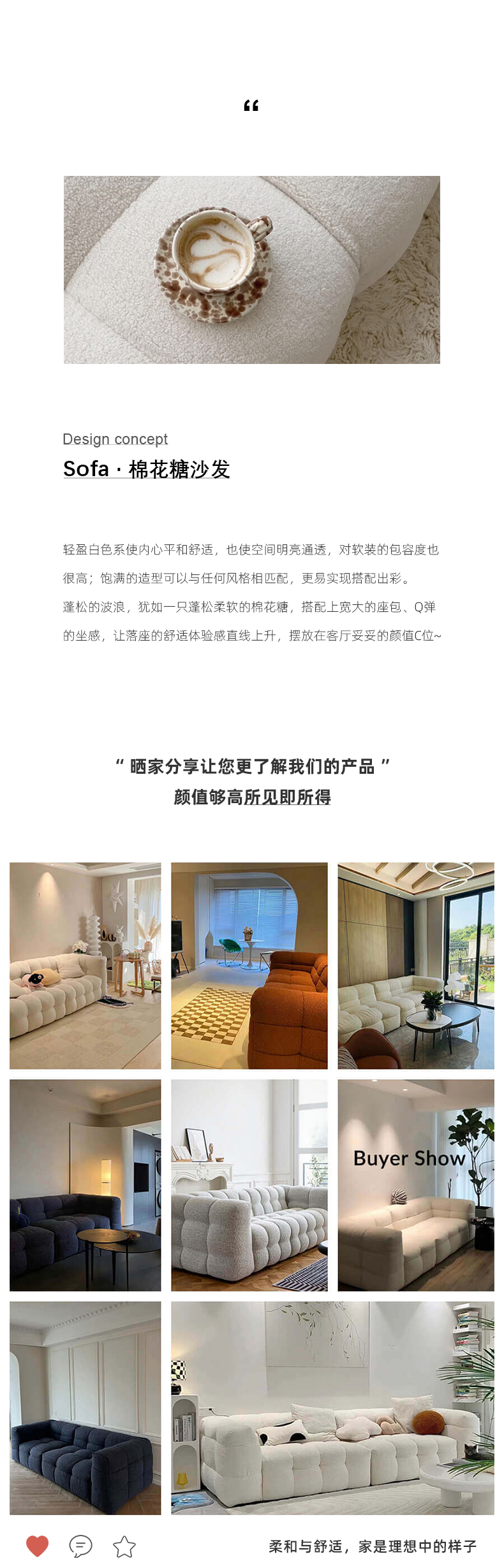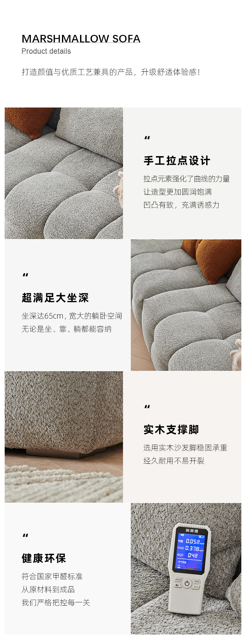 贝斯solo 设计师 网红 极简 布艺+优质高弹海绵+优质羽绒+实木框架+底架 三人位 SF0094云朵2.6米沙发| 商品详情 | 规格参数 | 评价(0) | 购买咨询() | 产品实拍图 | 服务标准 |