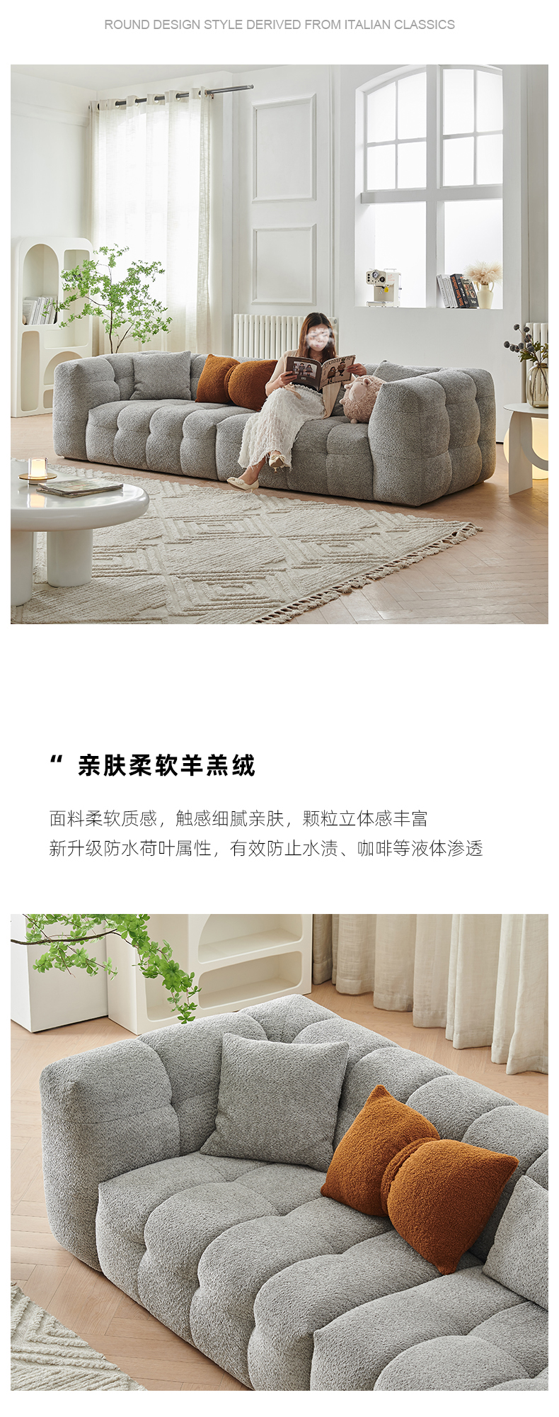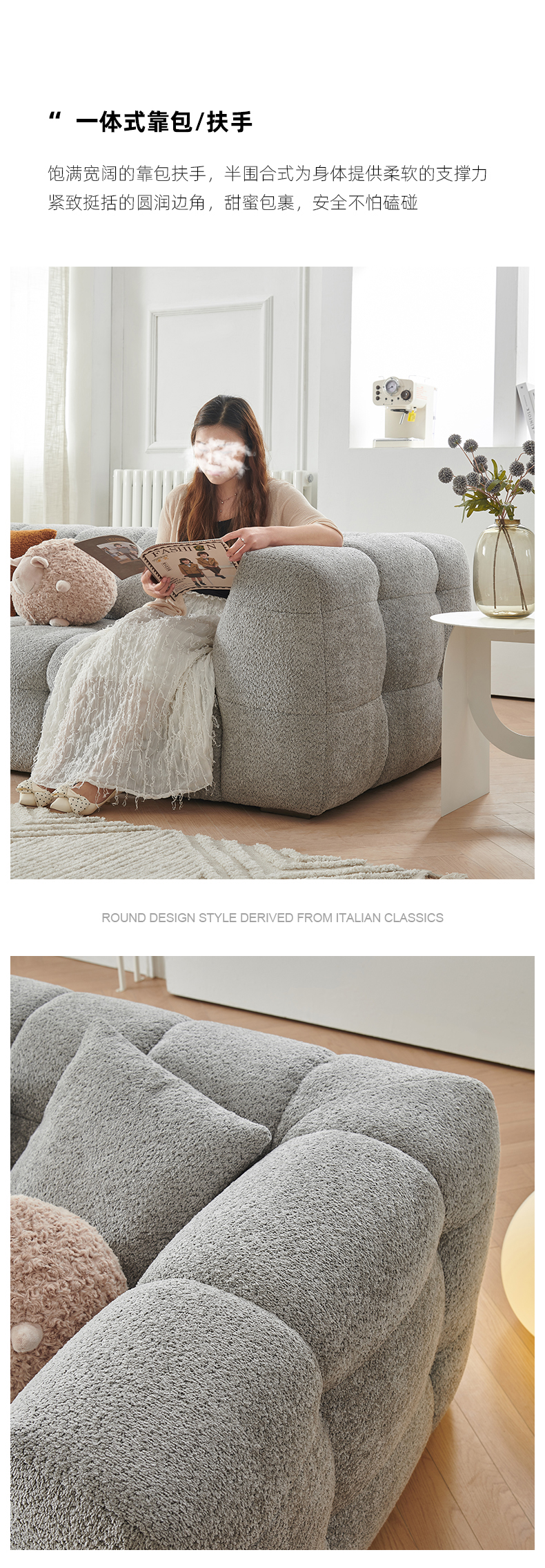 贝斯solo 设计师 网红 极简 布艺 定型棉 三人位【不做分体】 泡泡2.4米沙发¥10509