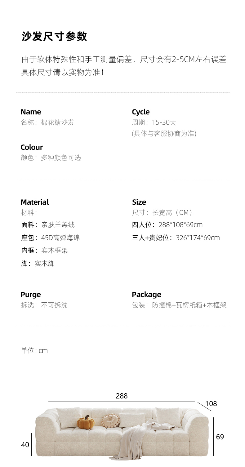 贝斯solo 设计师 网红 极简 布艺 俄罗斯进口松木内架 高回弹海绵填充靠背 三人位【不做分体】 糖果2.3米沙发¥7784