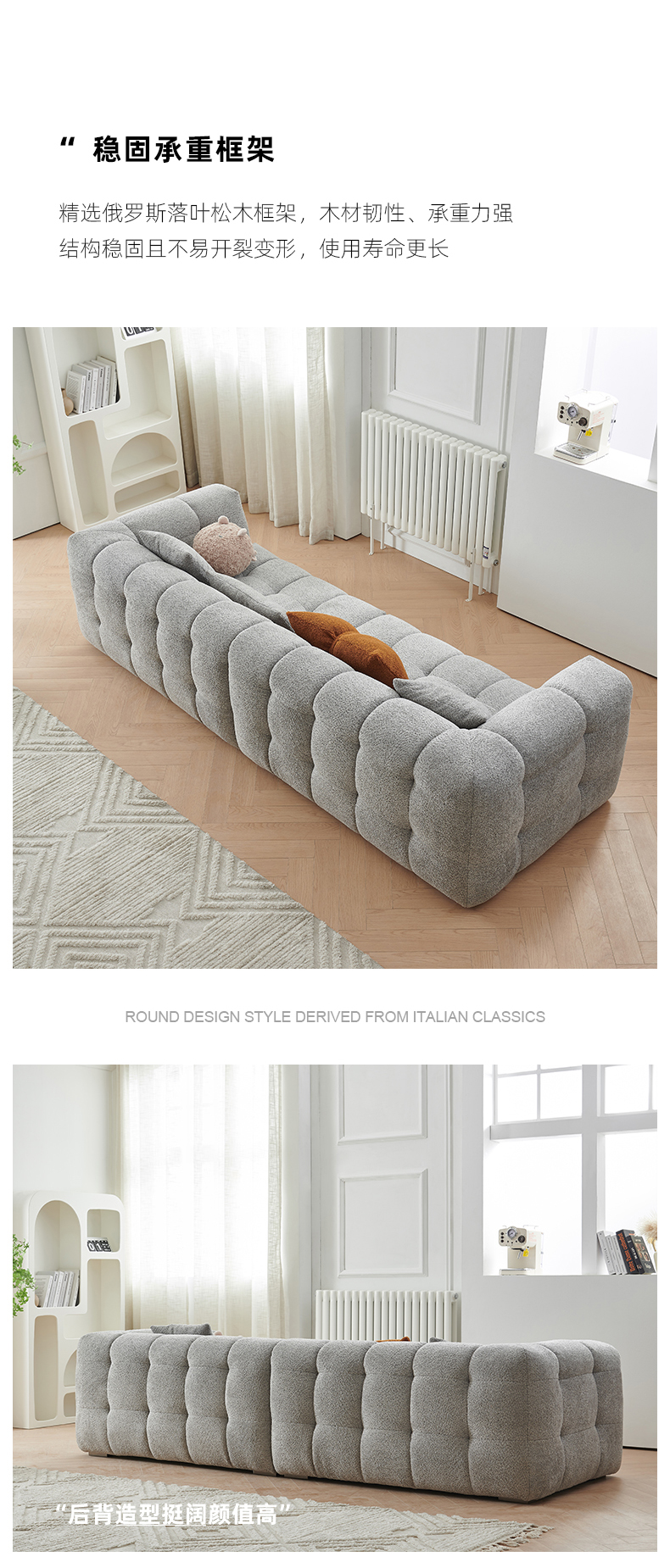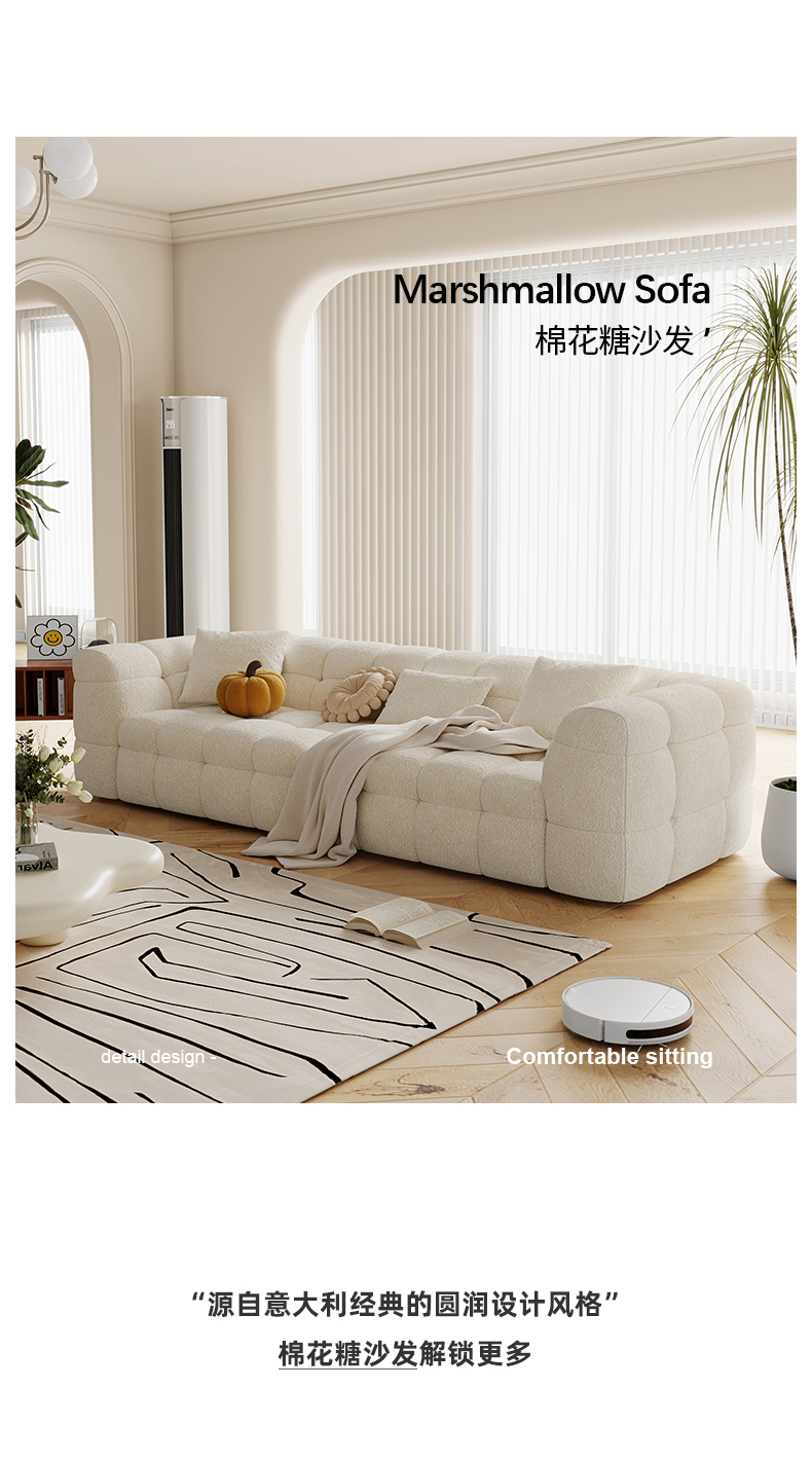 贝斯solo 设计师 网红 极简 布艺 俄罗斯进口落叶松 优质高回弹海绵靠包 分体三人位 棉花糖2.34米沙发