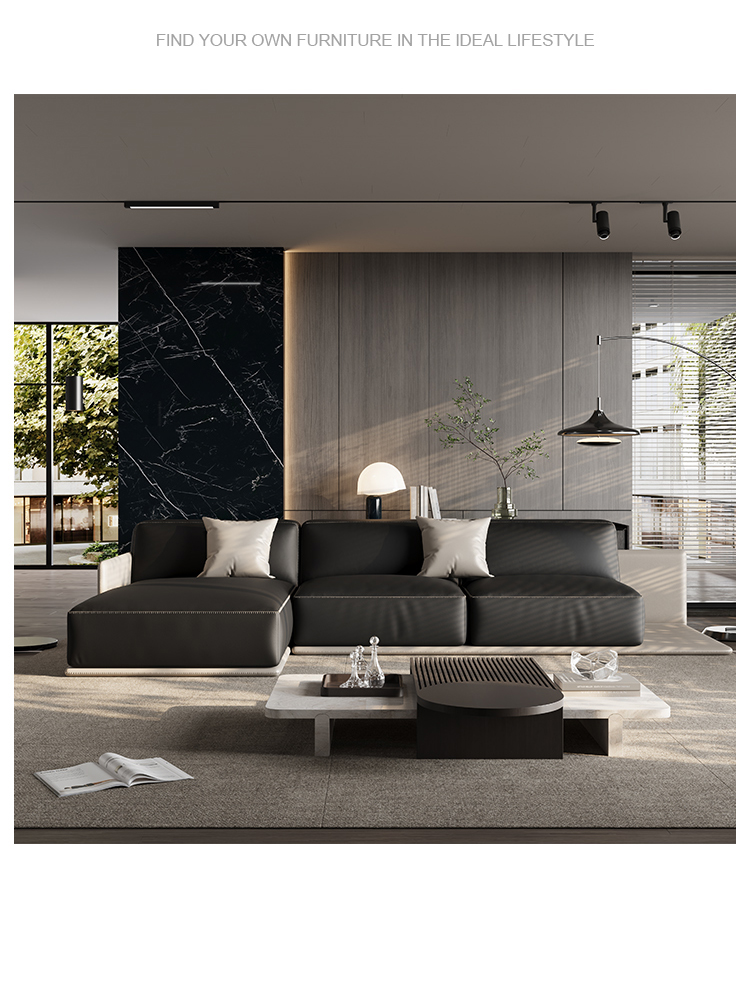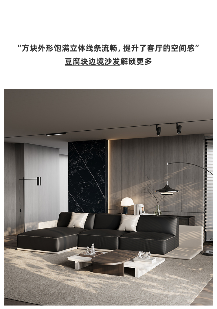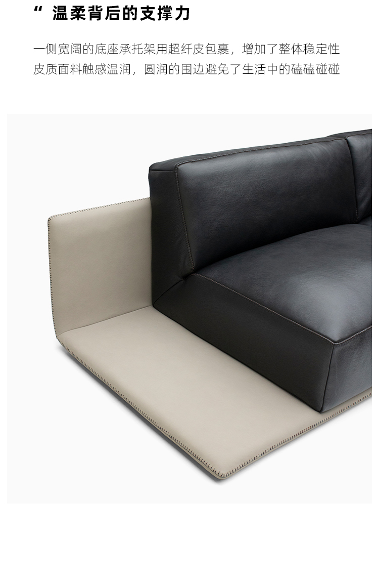 贝斯solo 设计师 网红 极简 接触面真皮 俄罗斯进口松木内架 高回弹海绵填充靠背 羽绒座包 右贵妃+无扶单+无扶单带茶几 豆腐块边境3.59米沙发