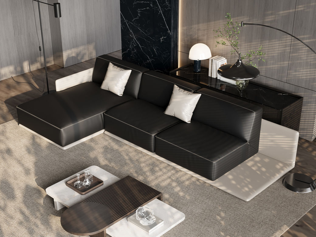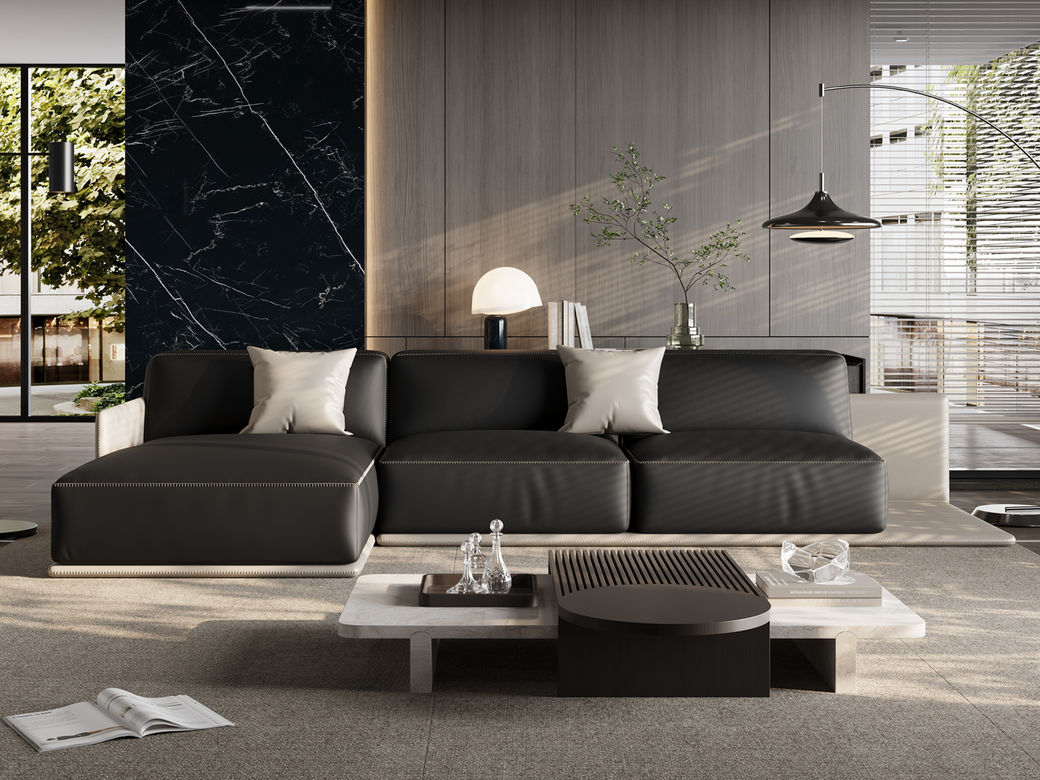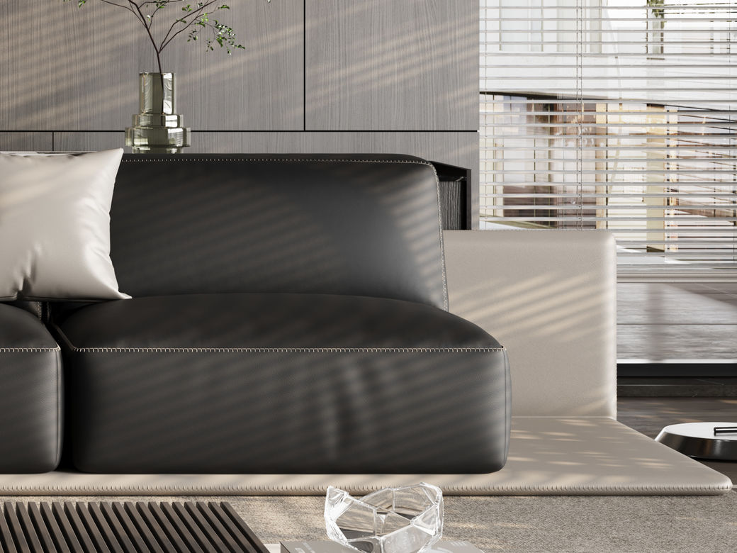 贝斯solo 设计师 网红 极简 接触面真皮 高回弹海绵填充靠背 左C+右A 香奈儿2.91米沙发¥25354