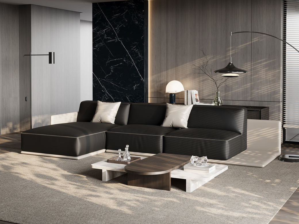 贝斯solo 设计师 网红 极简 接触面真皮 高回弹海绵填充靠背 右单+无单+左贵妃 鲸鱼尾3.25米沙发