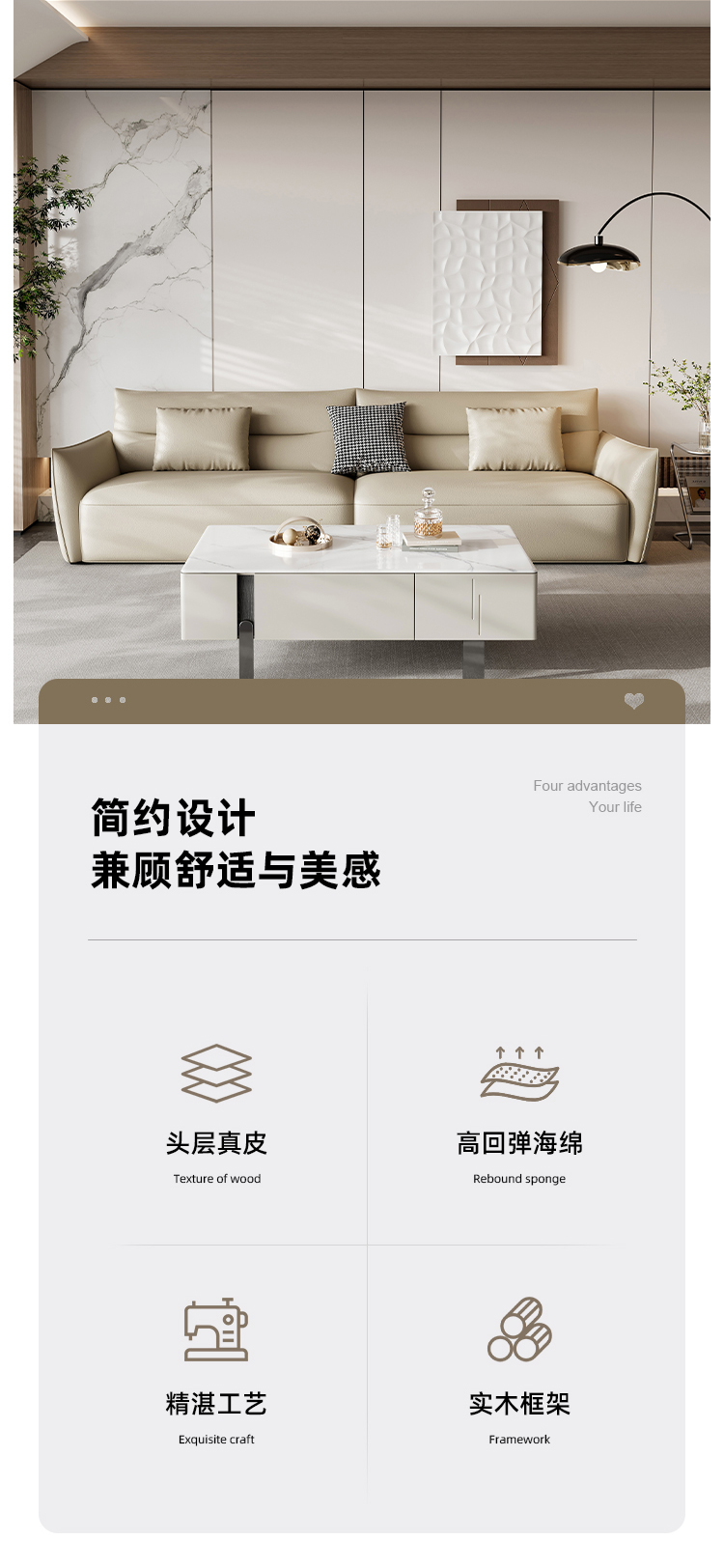 贝斯solo 设计师 网红 极简 布艺+仿皮 俄罗斯进口落叶松 优质高回弹海绵靠包 四人位 ELAN依澜3.4米沙发¥6250