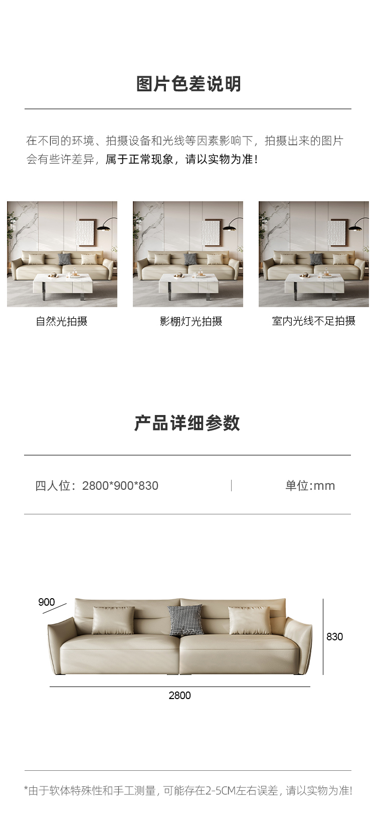 贝斯solo 设计师 网红 极简 双面磨砂布 进口松木内架 高回弹海绵+羽绒 四人位 法乐芙2.8米沙发¥14779