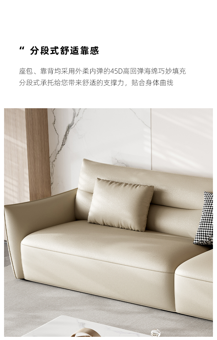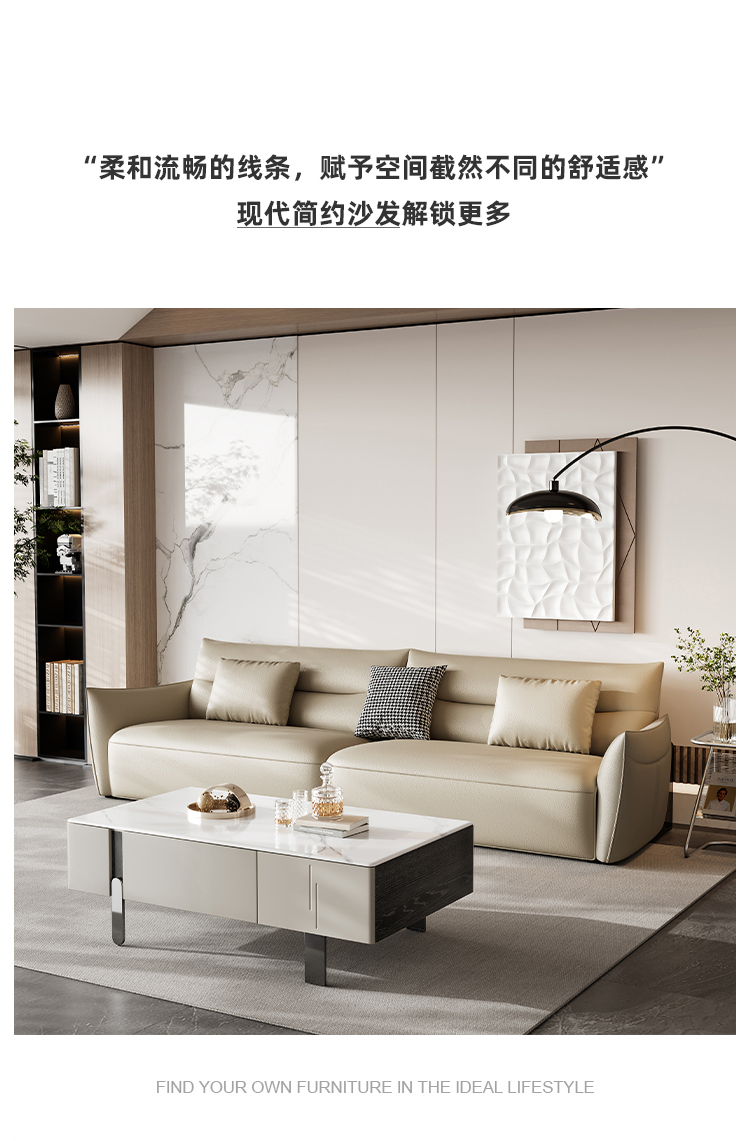 贝斯solo 设计师 网红 极简 磨砂皮 进口松木内架 高回弹足45密度海绵 A+B+C 冲浪3.93米沙发