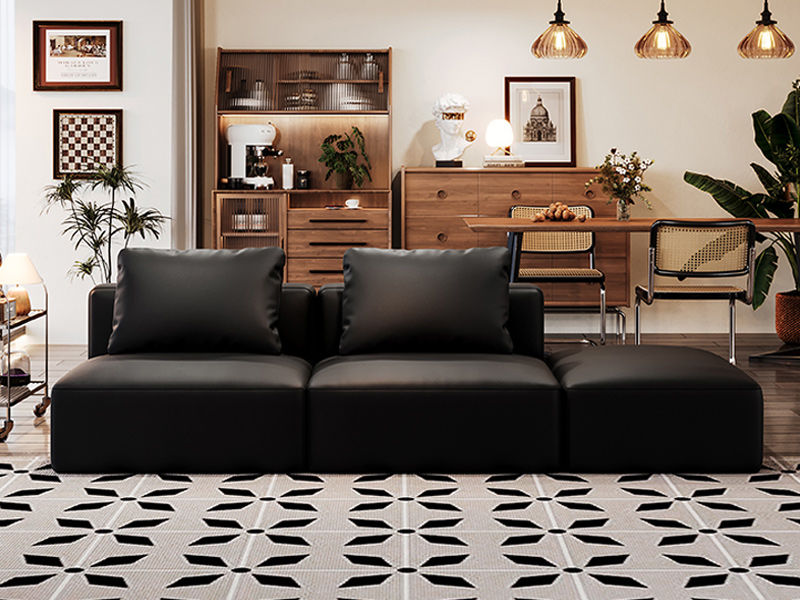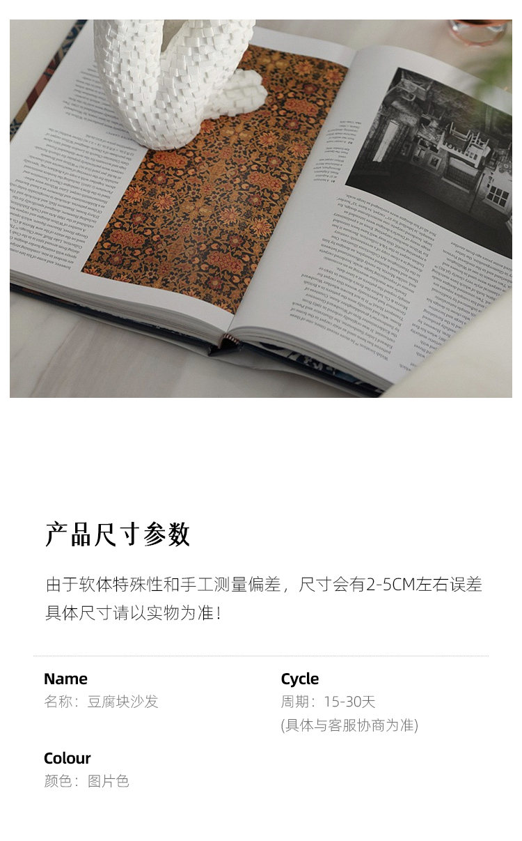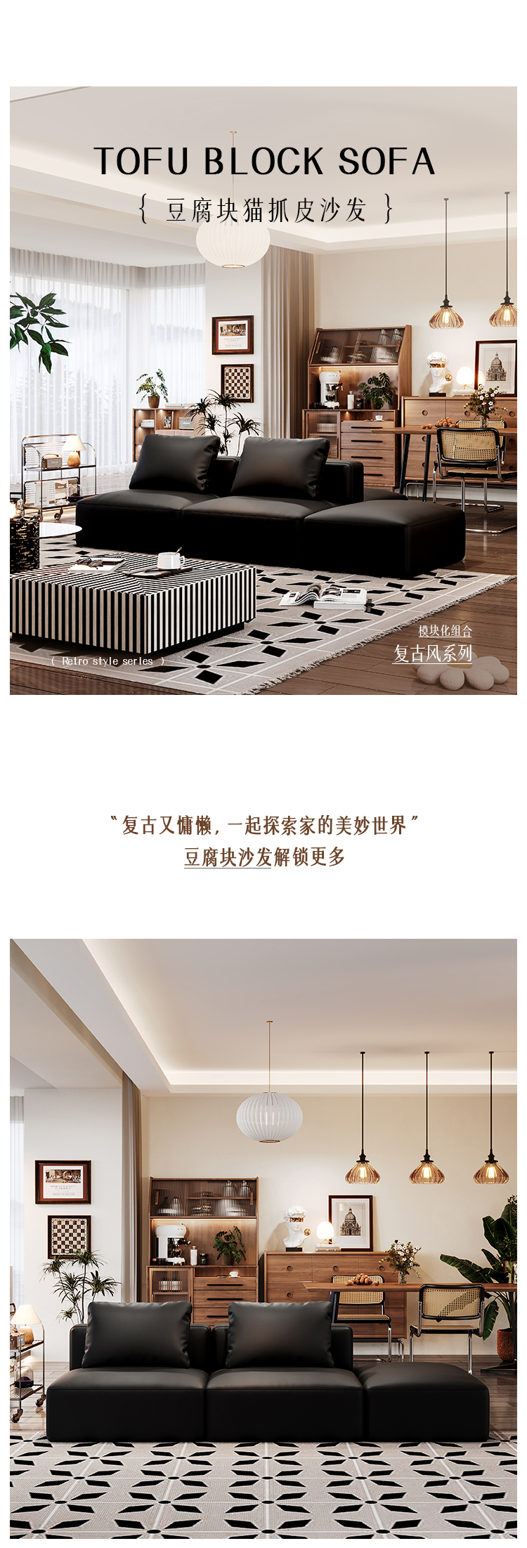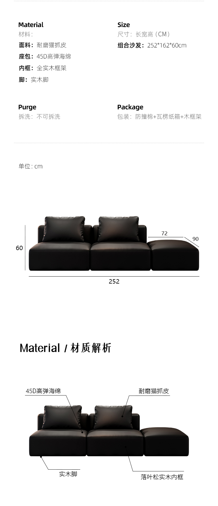 贝斯solo 设计师 网红 极简 布艺 俄罗斯进口落叶松 优质高回弹海绵靠包 无扶单+脚踏组合 岛屿豆腐块2.5米沙发
