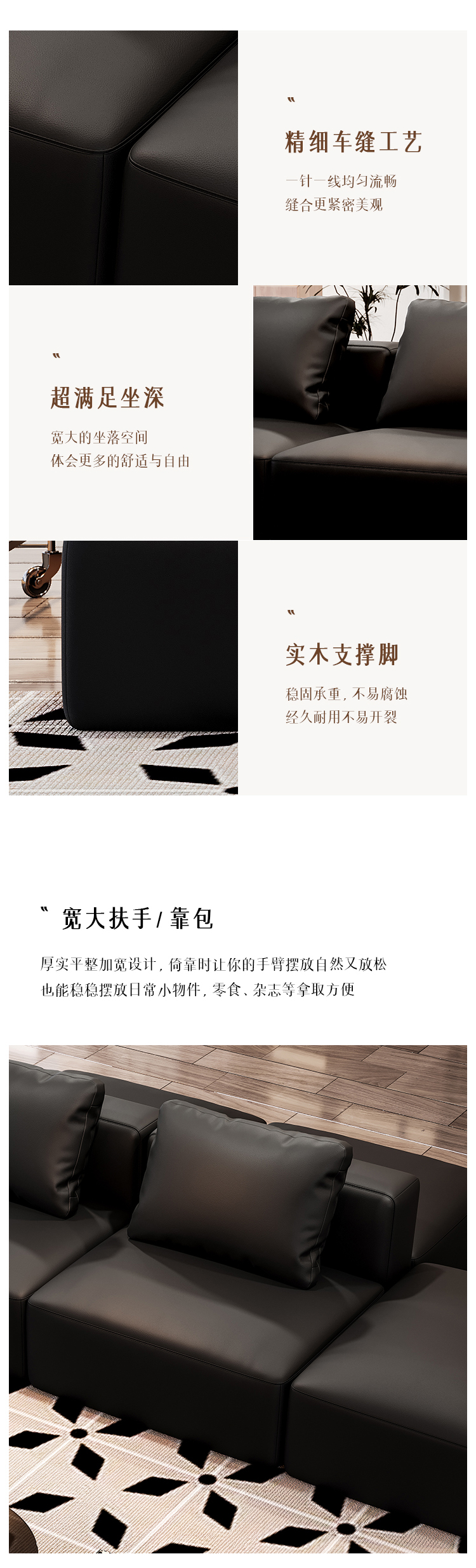 贝斯solo 设计师 网红 极简 布艺+仿皮 俄罗斯进口落叶松 优质高回弹海绵靠包 四人位 ELAN依澜3.4米沙发
