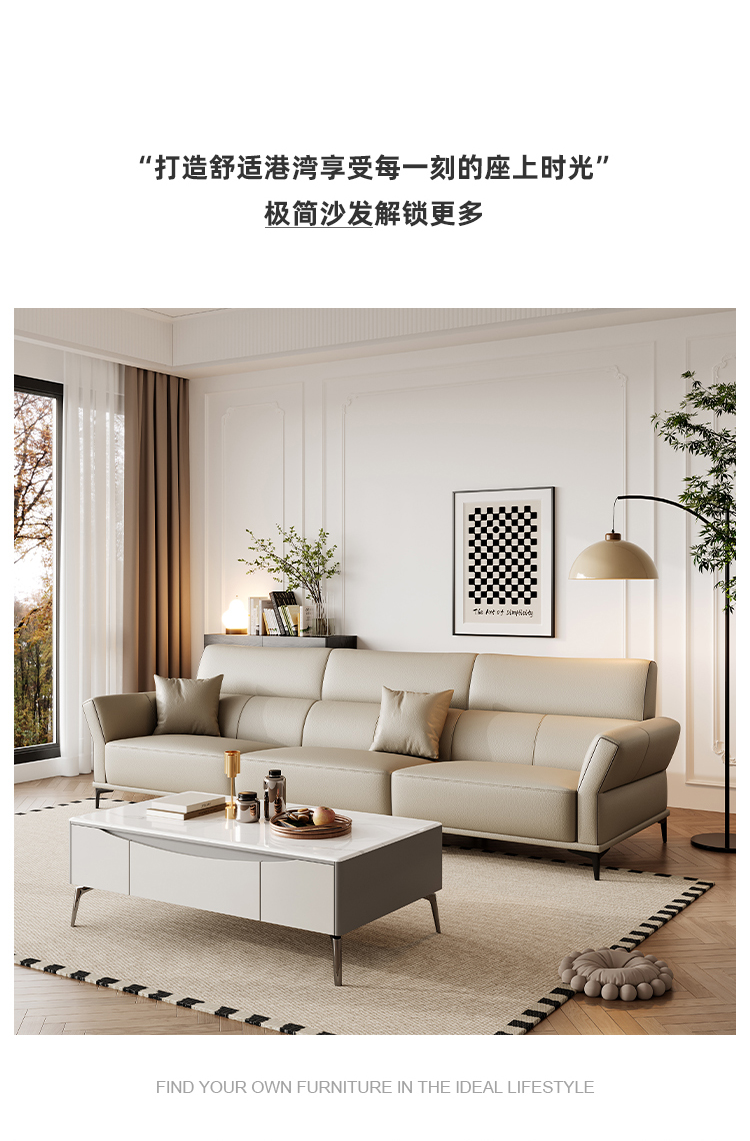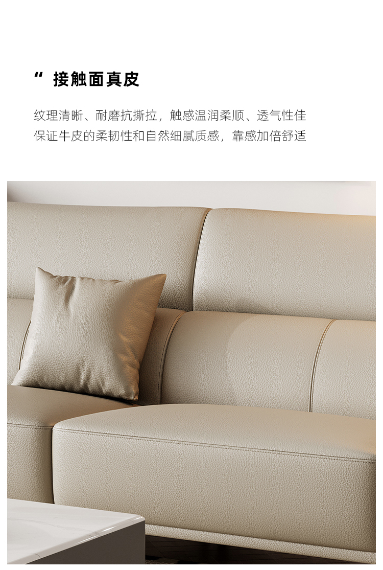 帝幔佧 极简 接触面真皮 俄罗斯进口松木内架 高回弹海绵填充靠背 右单扶双+左单扶双 极简真皮3.08米沙发¥17643