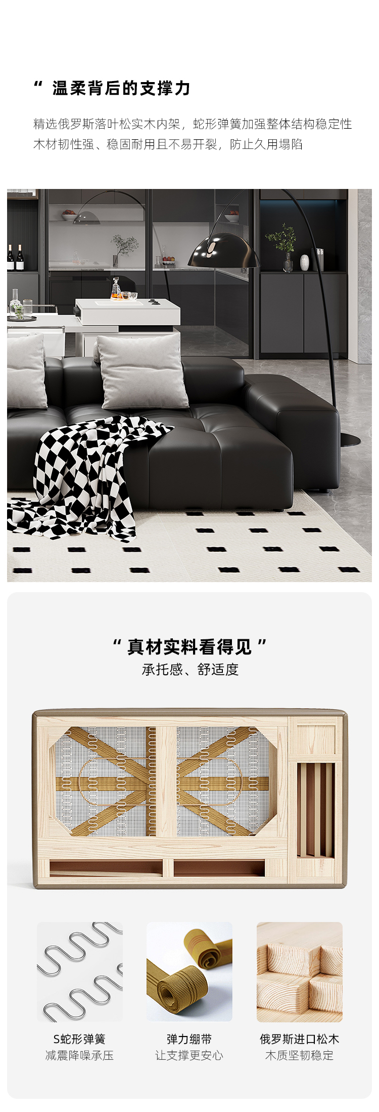 贝斯solo 设计师 网红 极简 全真皮+全实木框架(俄罗斯进口落叶松)+45D高回弹海绵+白鹅绒【含木架】 四人位 布雷泽3.15米沙发¥11688