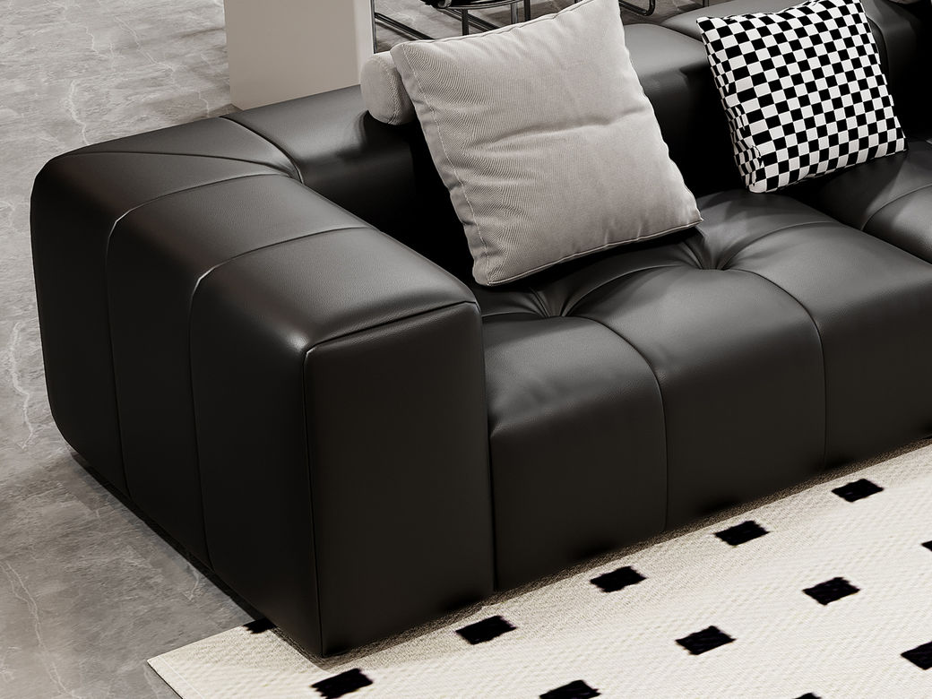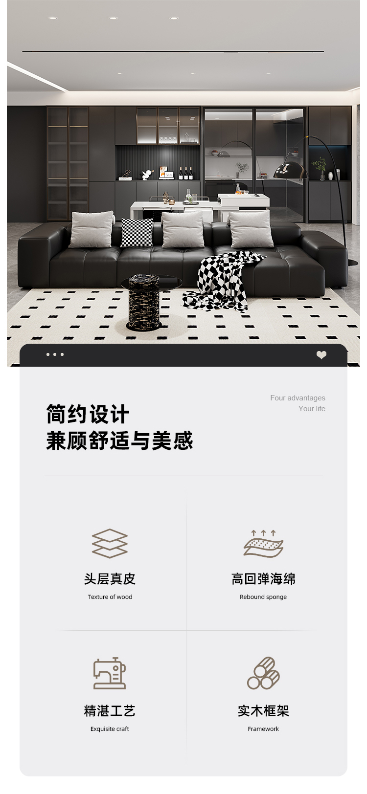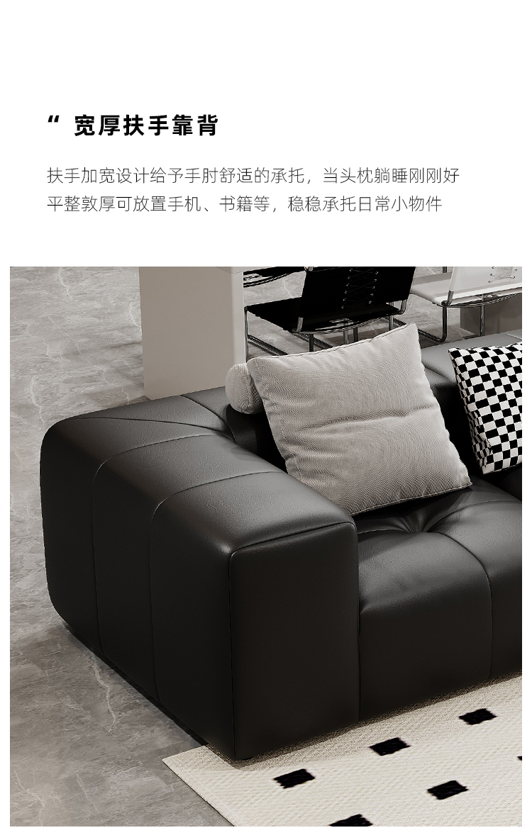 贝斯solo 设计师 网红 极简 接触面真皮 俄罗斯进口松木内架 高回弹海绵填充靠背 四人位 豆腐块2.6米沙发¥7784