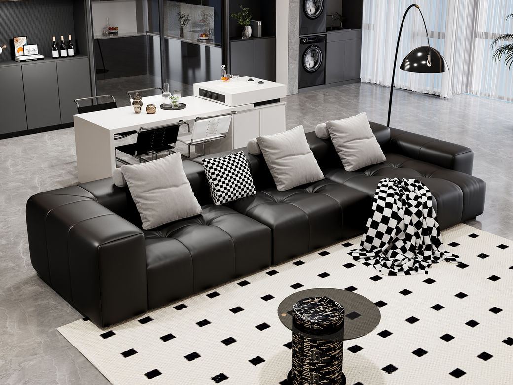 贝斯solo 设计师 网红 极简 全真皮 高回弹海绵填靠背 左二+右二 拉扣2.5米沙发¥12097