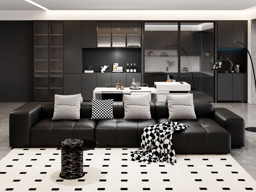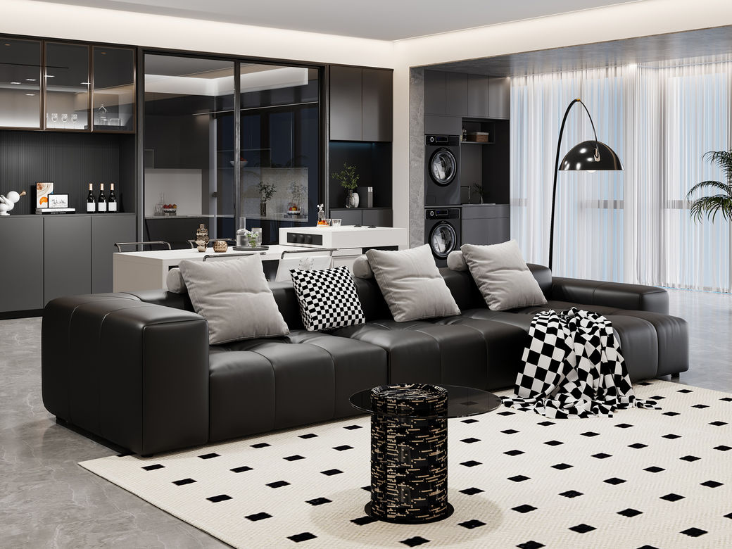 贝斯solo 设计师 网红 极简 全真皮 高回弹海绵填充靠背 右单+无单+左贵妃 鲸鱼尾3.25米沙发【全真皮】
