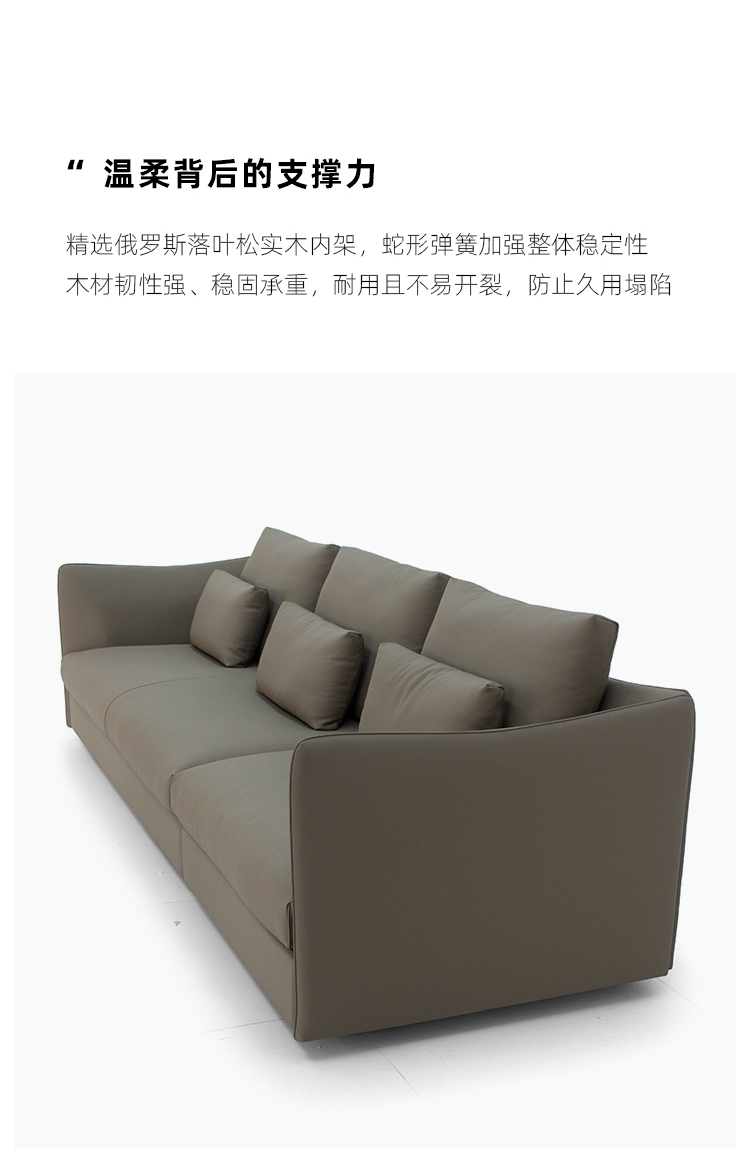 贝斯solo 设计师 网红 极简 全真皮+全实木框架(俄罗斯进口落叶松)+45D高回弹海绵+白鹅绒【含木架】 四人位 布雷泽3.15米沙发¥11688