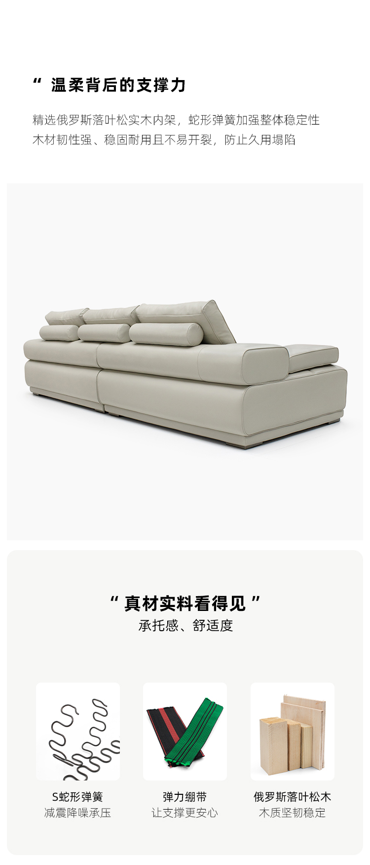 贝斯solo 设计师 网红 极简 全真皮+全实木框架(俄罗斯进口落叶松)+45D高回弹海绵+白鹅绒【含木架】 四人位 布雷泽3.15米沙发
