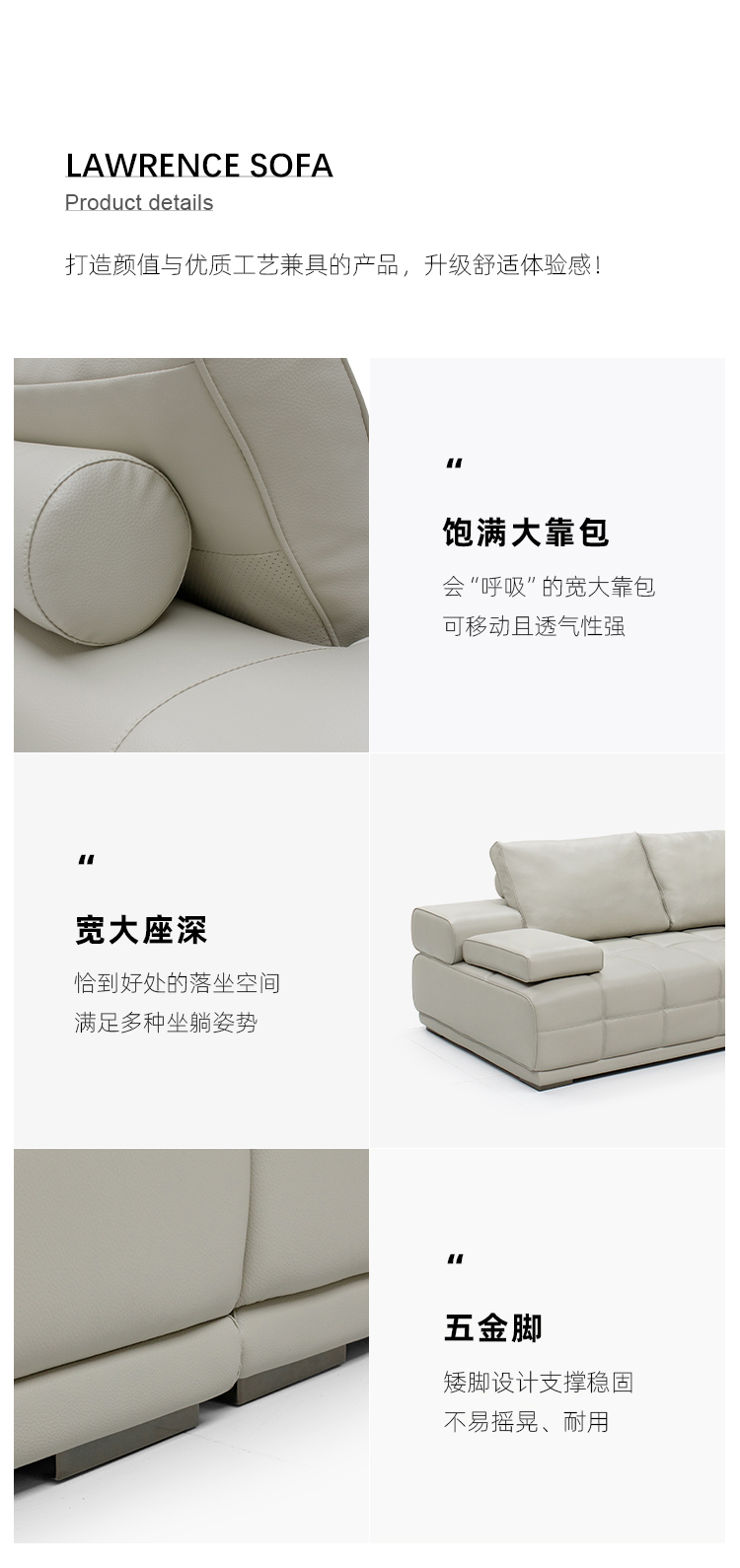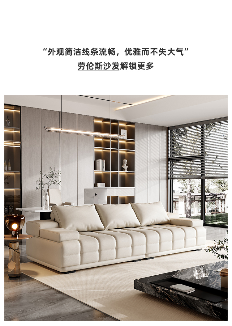 贝斯solo 设计师 网红 极简 全真皮 进口松木内架 高回弹海绵 五人位 劳伦斯3.36米沙发¥8794