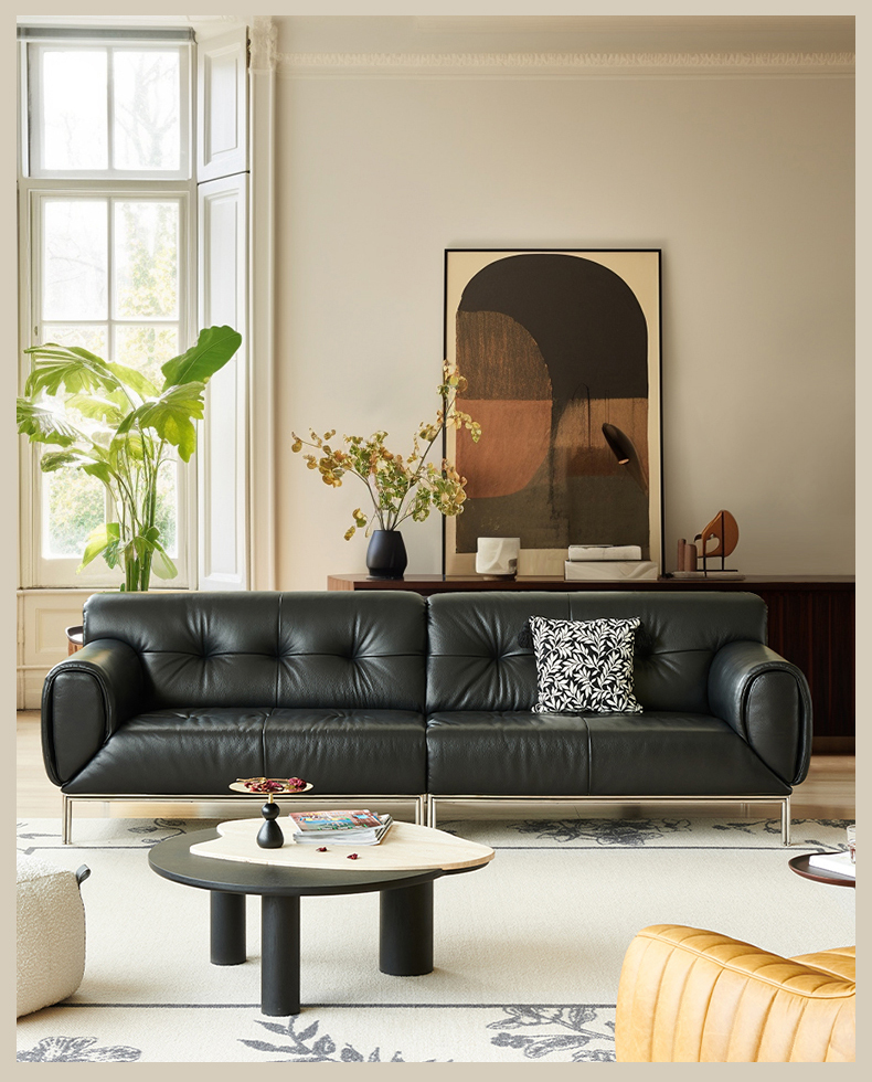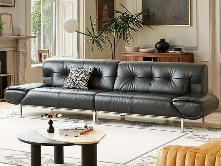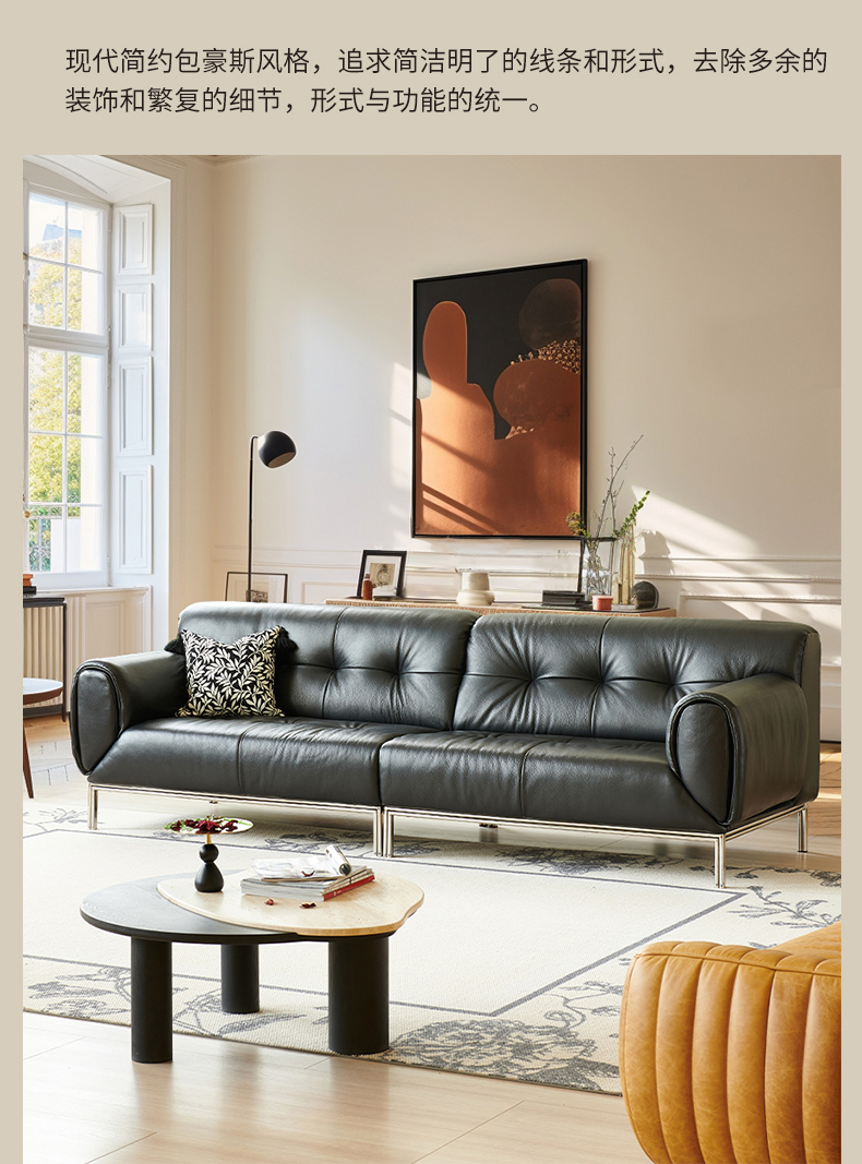 贝斯solo 设计师 网红 极简 接触面真皮 俄罗斯进口松木内架 高回弹足45密度海绵填充靠背 羽绒座包 四人位分体 极简真皮3.03米沙发¥15240