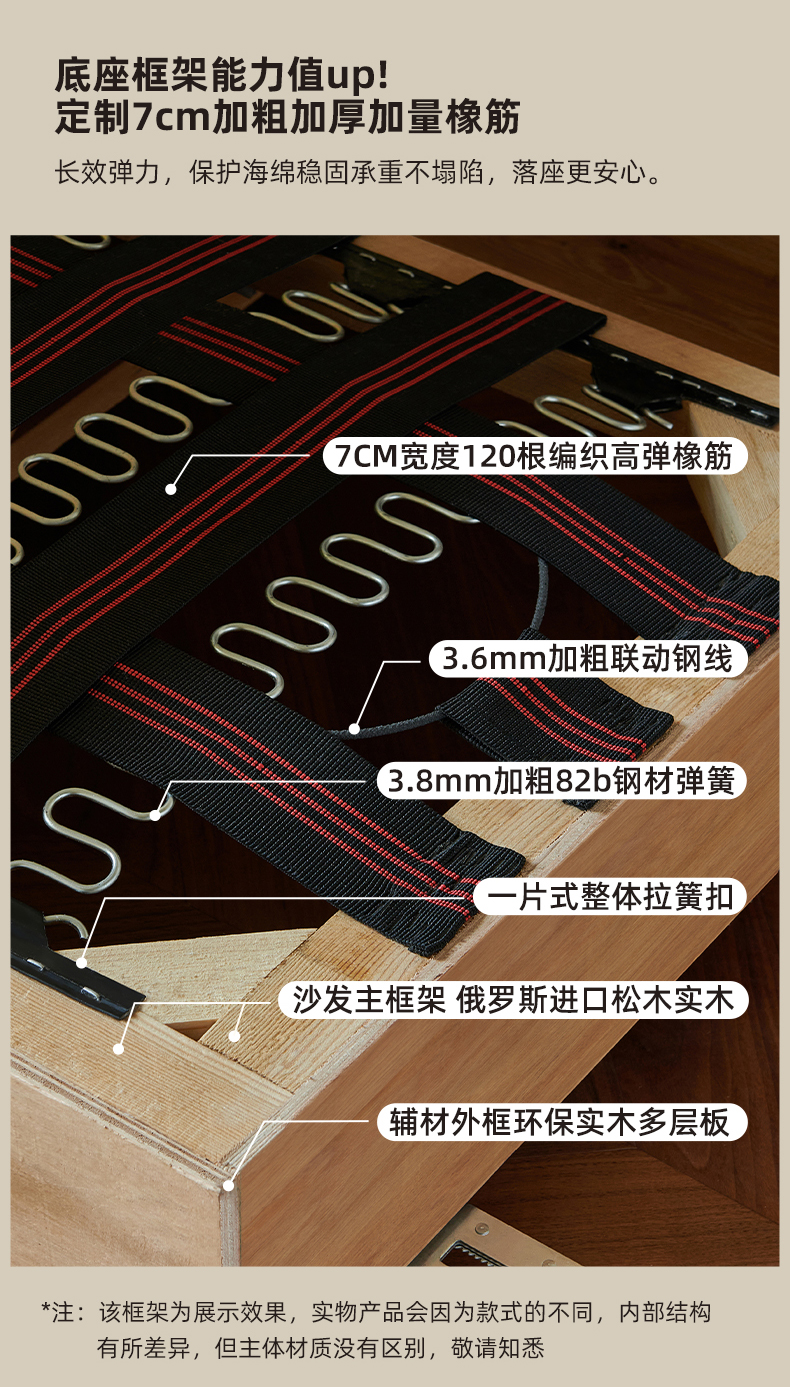 贝斯solo 设计师 网红 极简 接触面真皮 俄罗斯进口松木内架 高回弹海绵填充靠背 五金底框 三人位 腰带2.55米沙发¥22257