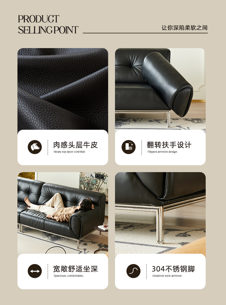 贝斯solo 设计师 网红 极简 全真皮 高回弹海绵填靠背 左二+右二 拉扣2.5米沙发| 商品详情 | 规格参数 | 评价(0) | 购买咨询() | 产品实拍图 | 服务标准 |
