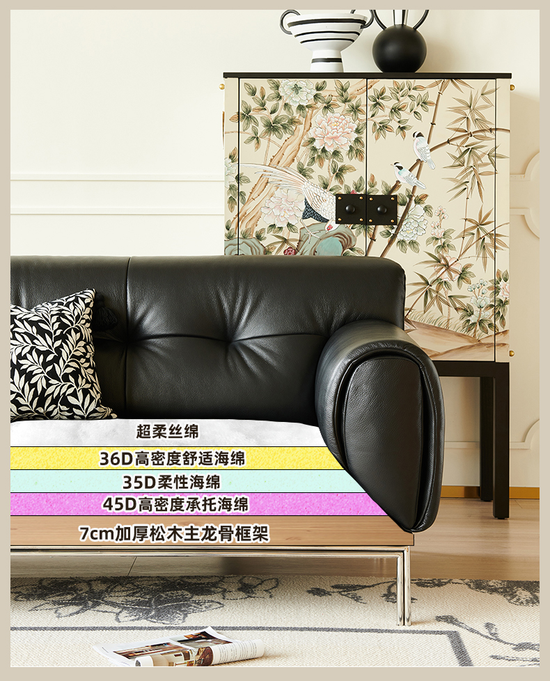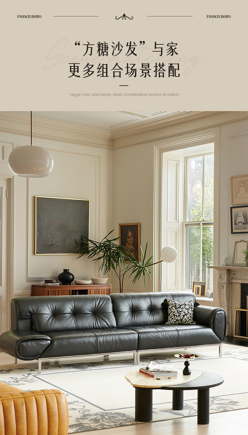 贝斯solo 设计师 网红 极简 接触面真皮 高回弹海绵填充靠背 左C+右A 香奈儿2.91米沙发¥18843