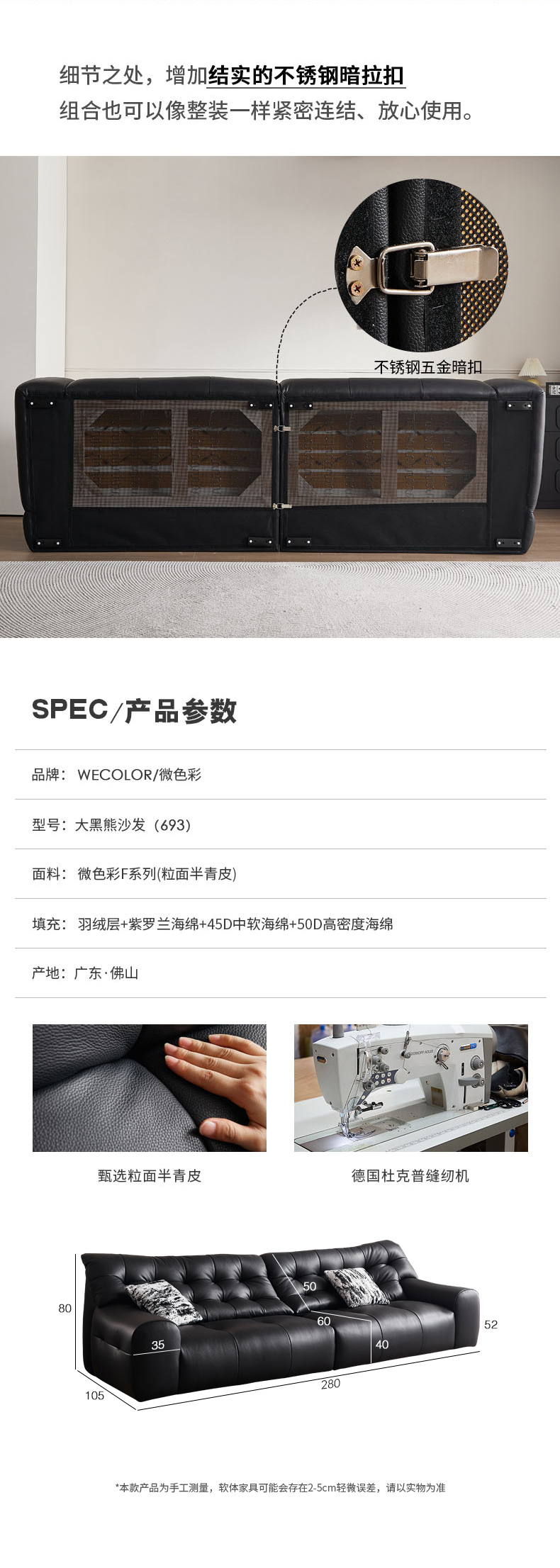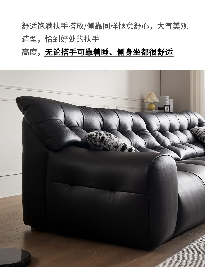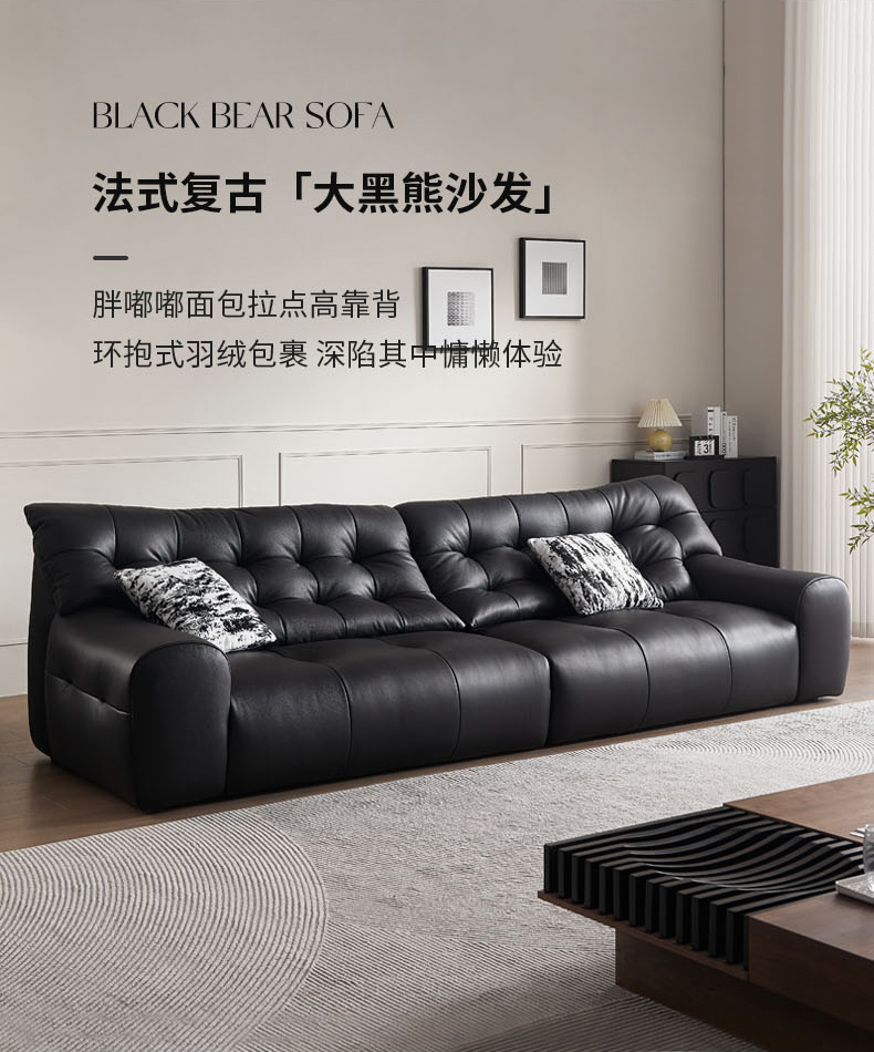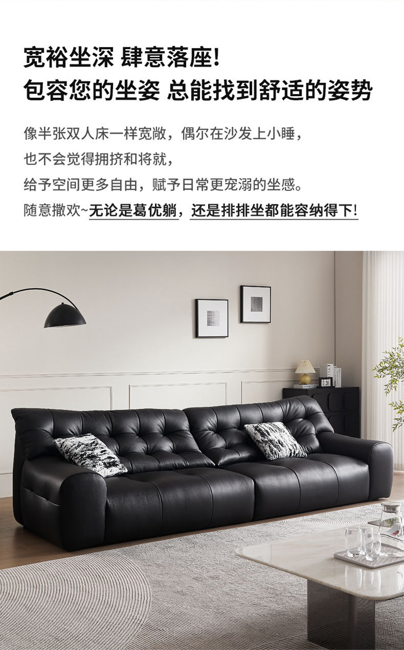 贝斯solo 设计师 网红 极简 接触面真皮 俄罗斯进口松木内架 高回弹45密度海绵 四人位 大黑熊2.8米沙发
