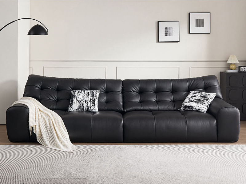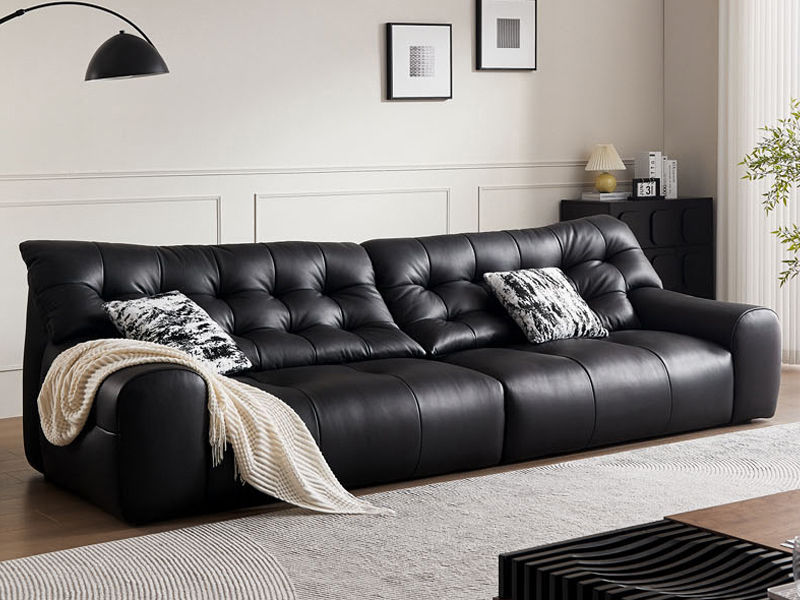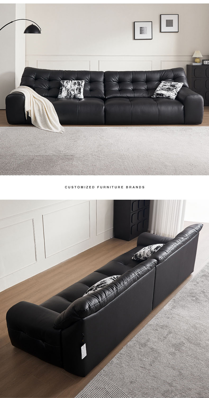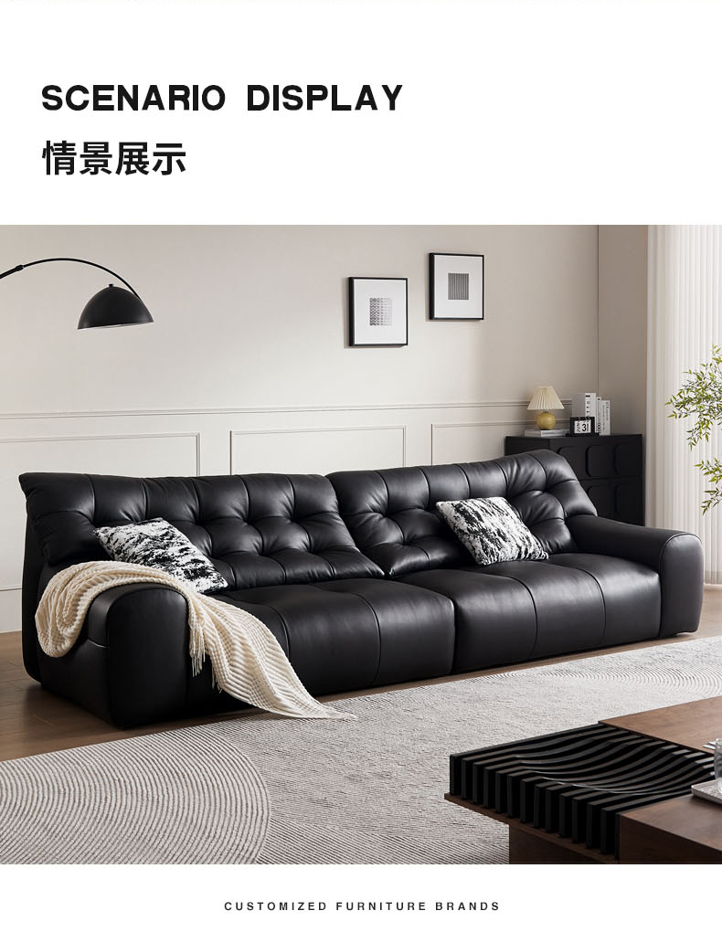 贝斯solo 设计师 网红 极简 接触面真皮 俄罗斯进口松木内架 高回弹45密度海绵 四人位 大黑熊2.8米沙发
