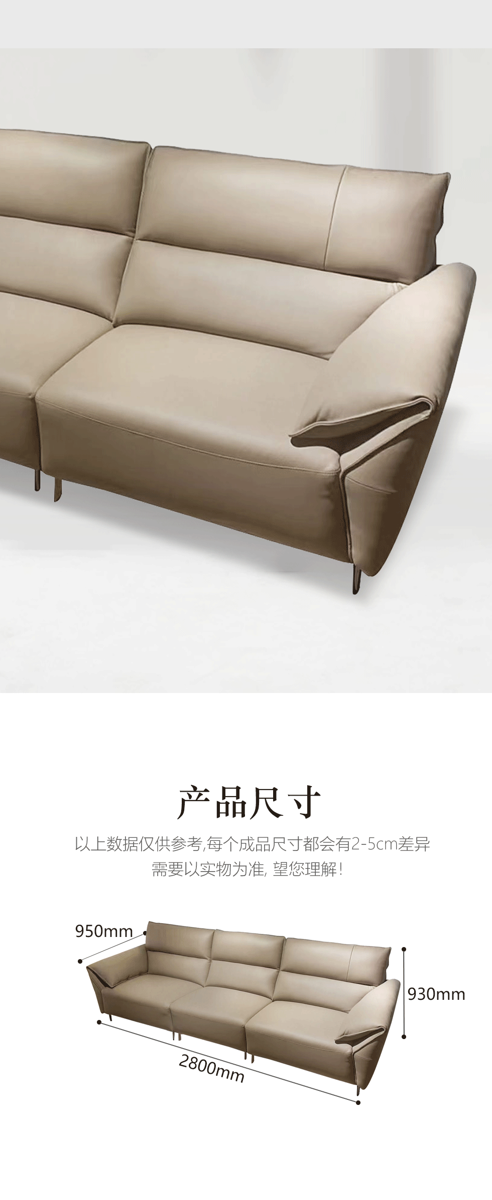 【套餐专享价】每屋优享系列 现代简约 接触面生态真皮+45度高回弹海绵+靠包+抱枕公仔棉填充+进口全实木抛光落叶松+金刚弹簧网+超级加宽松 紧带+13cm黑色铁脚 2.8米 沙发¥4660