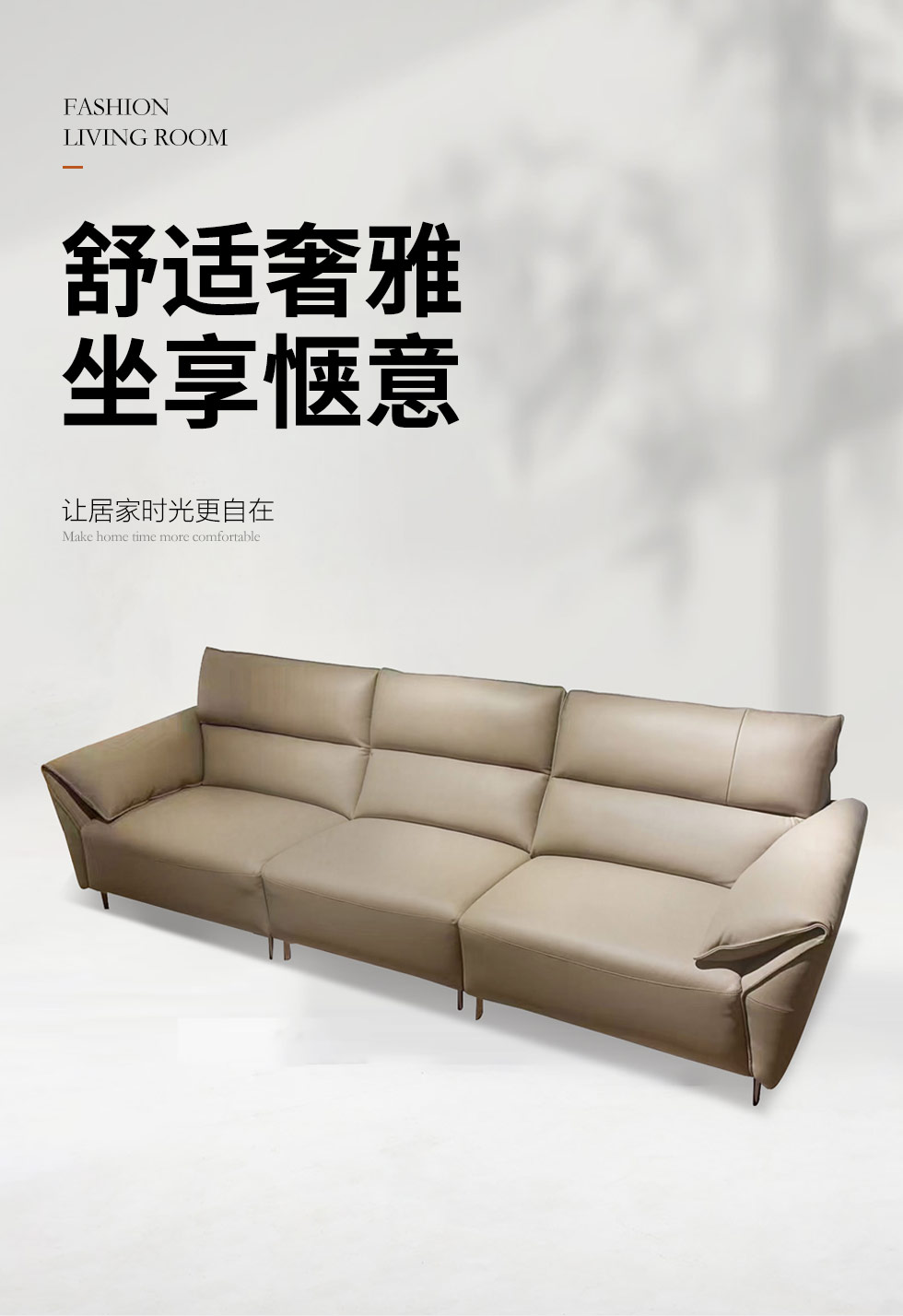 【套餐专享价】每屋优享系列 现代简约 接触面科技真皮 全实木刨方木架+蛇形弹簧 45密高密度海绵 碳素钢五金脚 2.8米直排 沙发¥4660