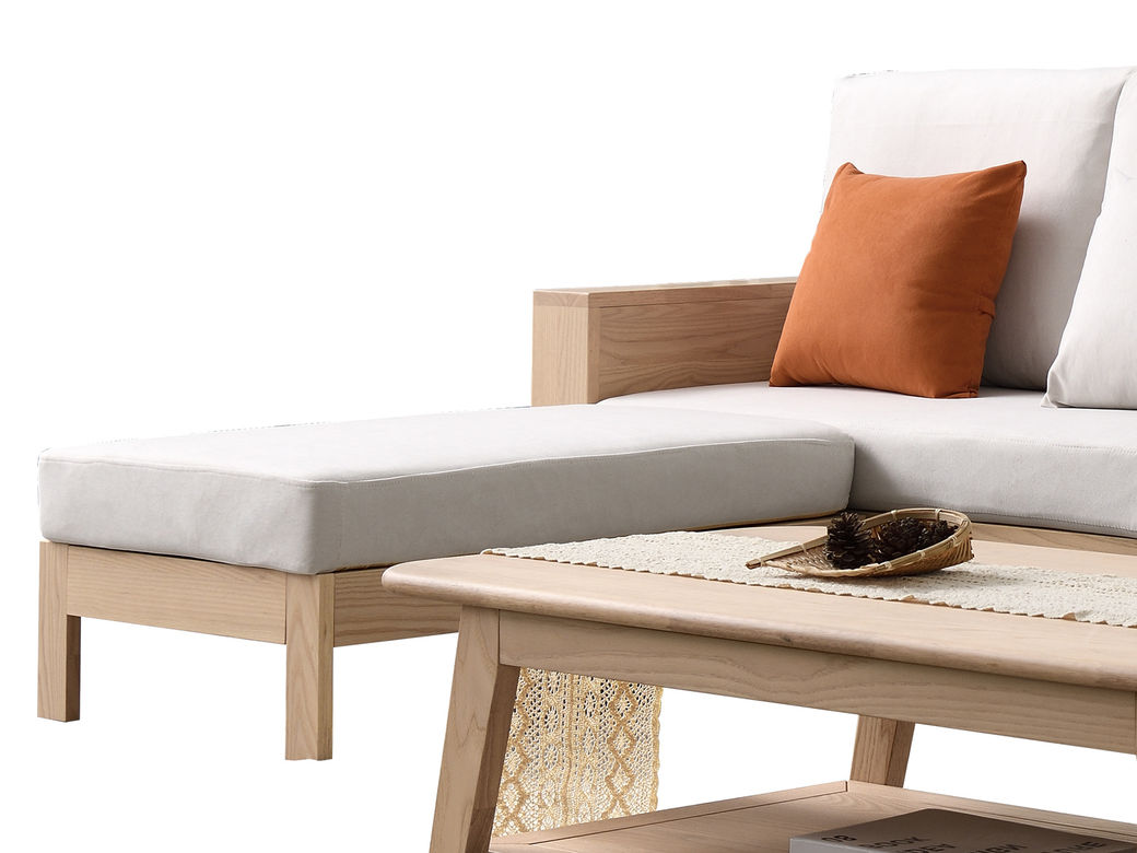 优木集 现代简约 接触面棉麻面料+高回弹海绵+白蜡木实木框架+橡胶木 2.13米沙发