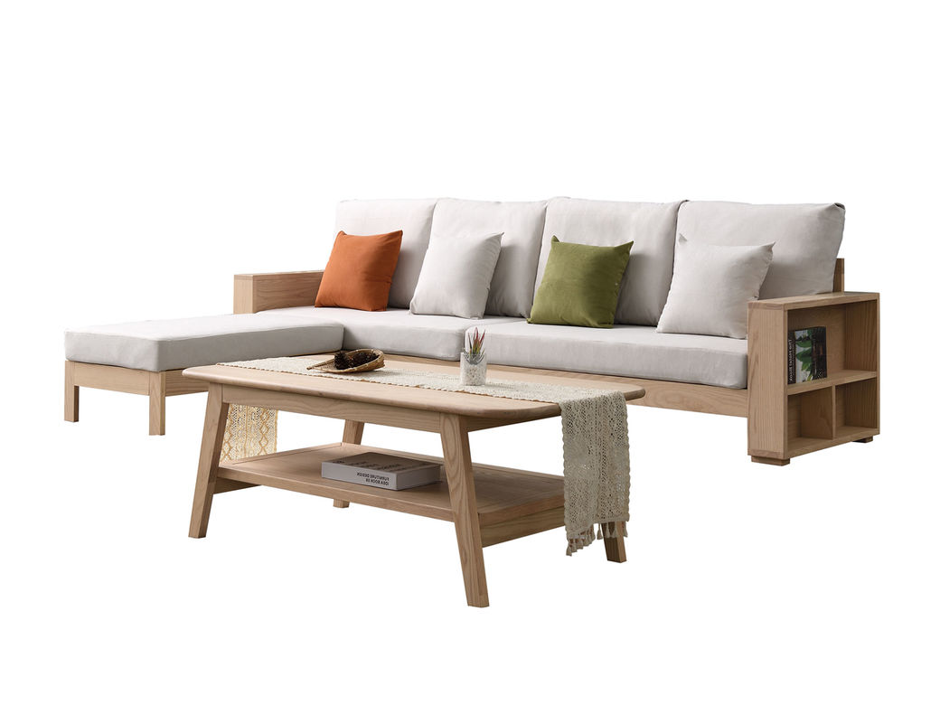 优木集 现代简约 接触面棉麻面料+高回弹海绵+白蜡木实木框架+橡胶木 2.572米沙发